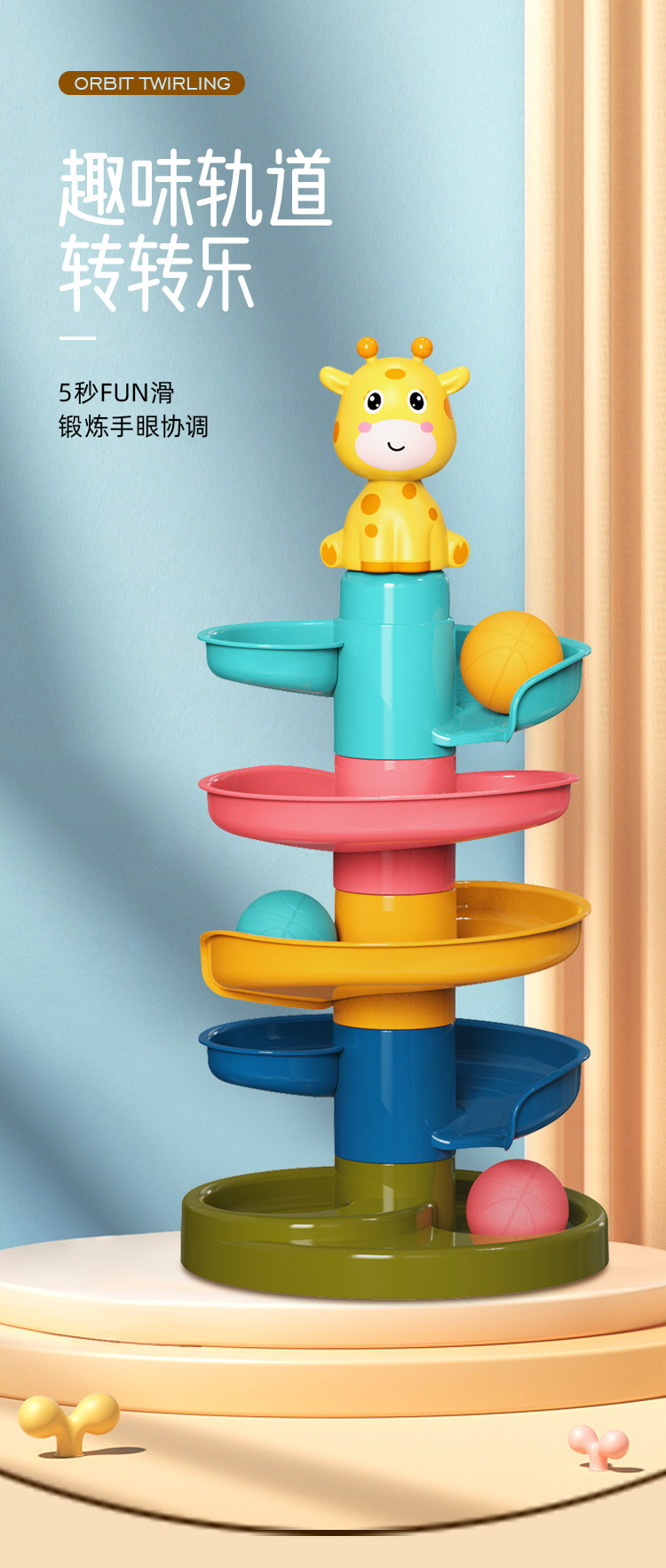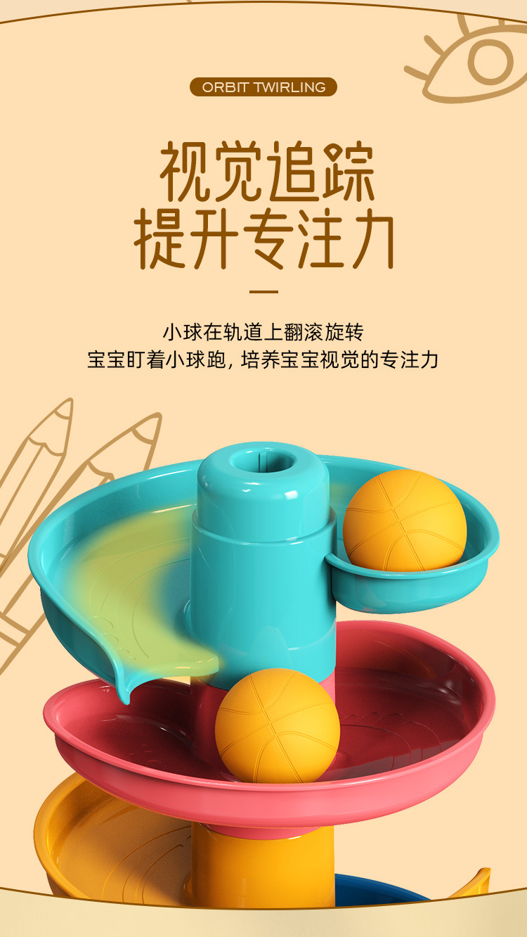 Customized Kidsren's Fun Track Slide Ball Tower Jenga Turn Around Baby Educational Early Education Rolling Ball Toy Kindergarten