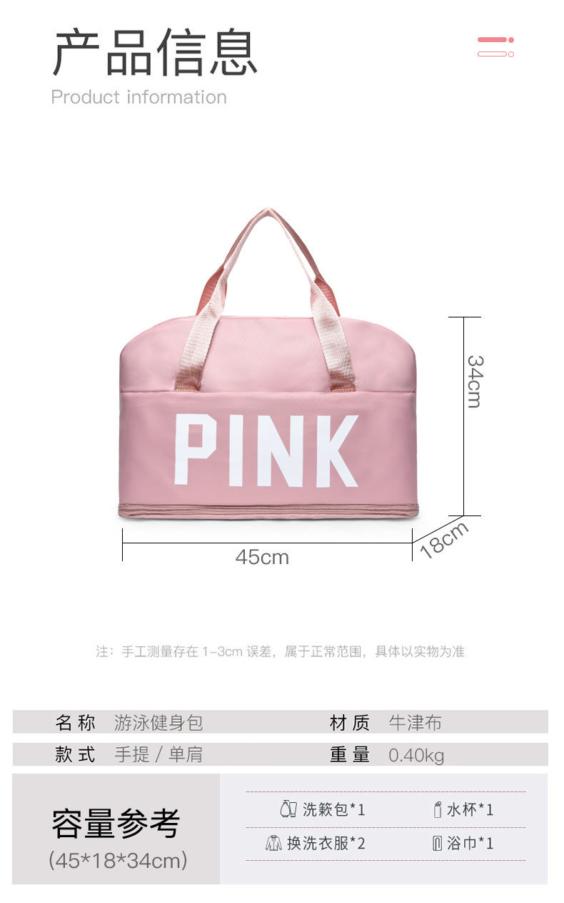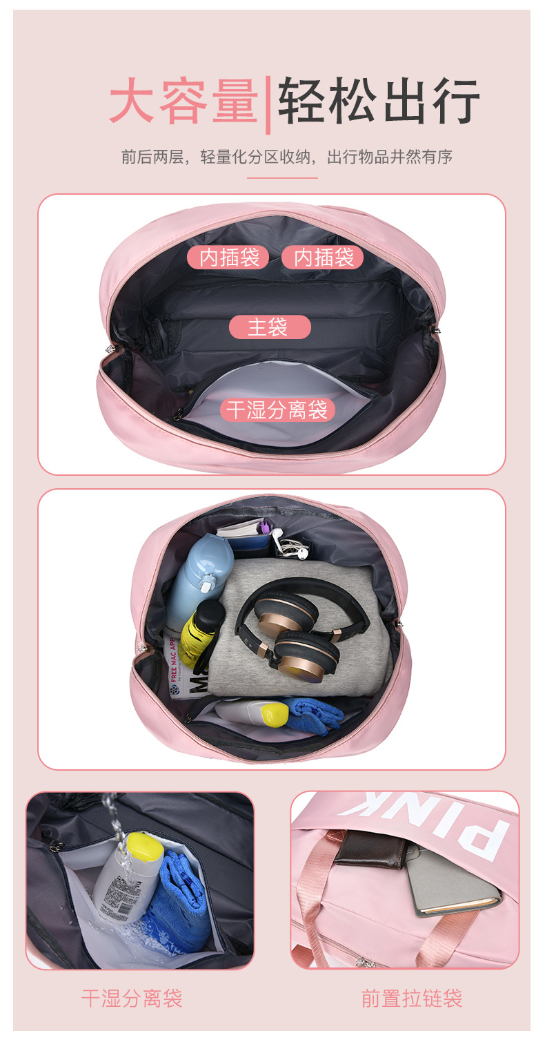 New Large Capacity Fashion Sports Fitness Bag Portable Yoga Bag Dry and Wet Separate Travel Bag Storage Bag Carrying Bag