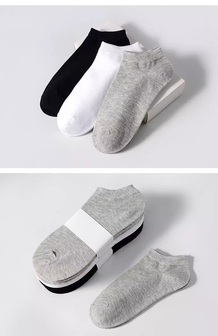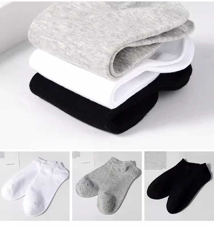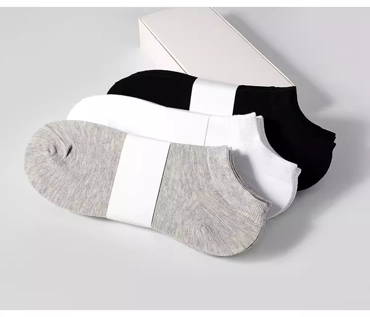Socks men's short socks spring and summer thin black and white blue solid color cotton socks breathable boat socks men's invisible socks wholesale