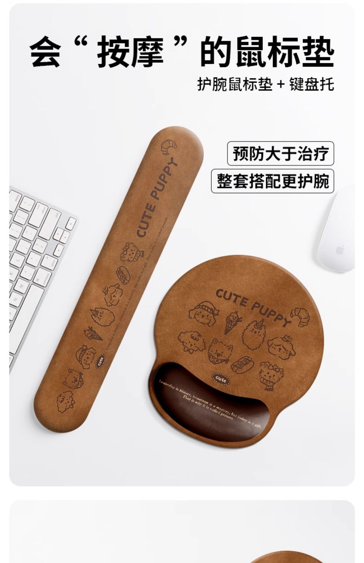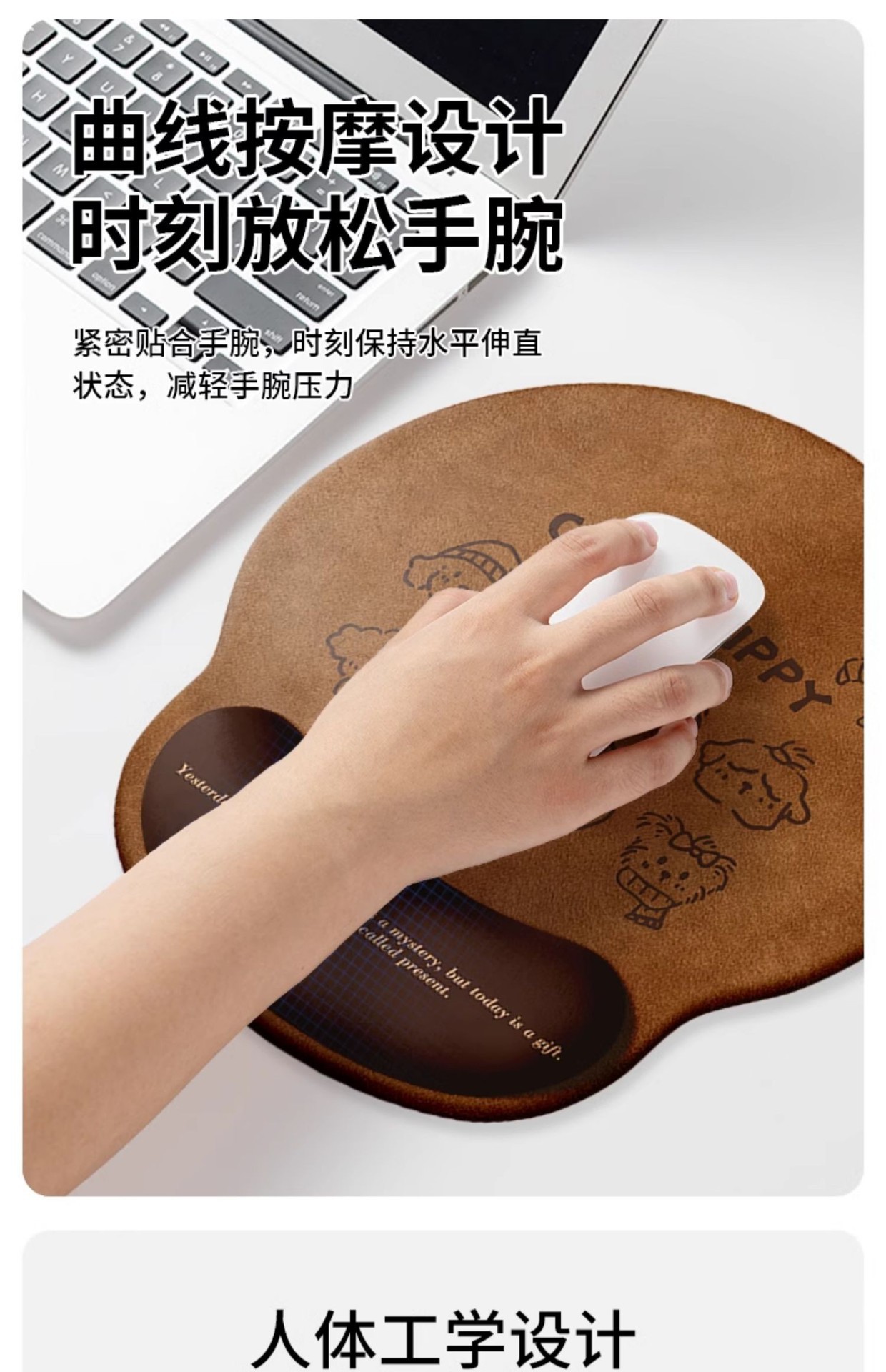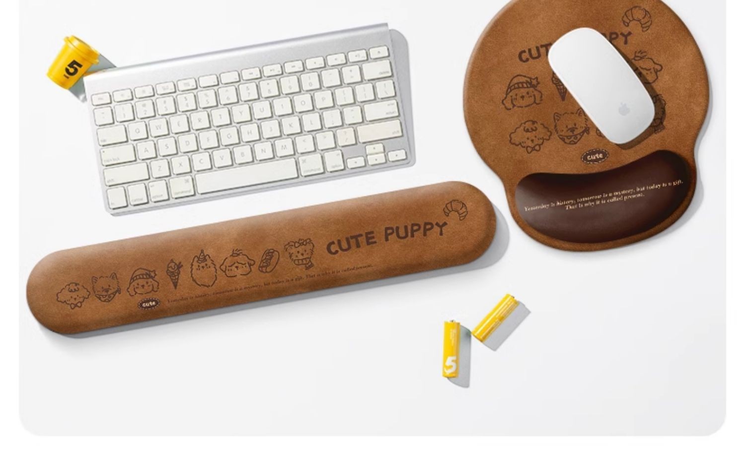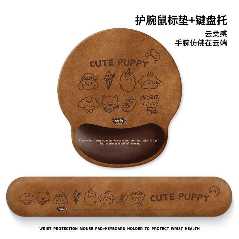Retro Mouse Pad Cute Brown Puppy Wrist Mouse Pad Shortcut Keys Collection Rubber Wrist Rest Office