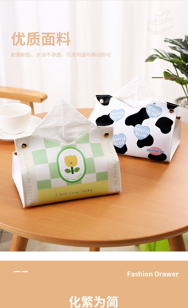 New Cartoon Cute Creative Leather Tissue Box Hotel Home Living Room Light Luxury Tissue Box Bedroom Tissue Box