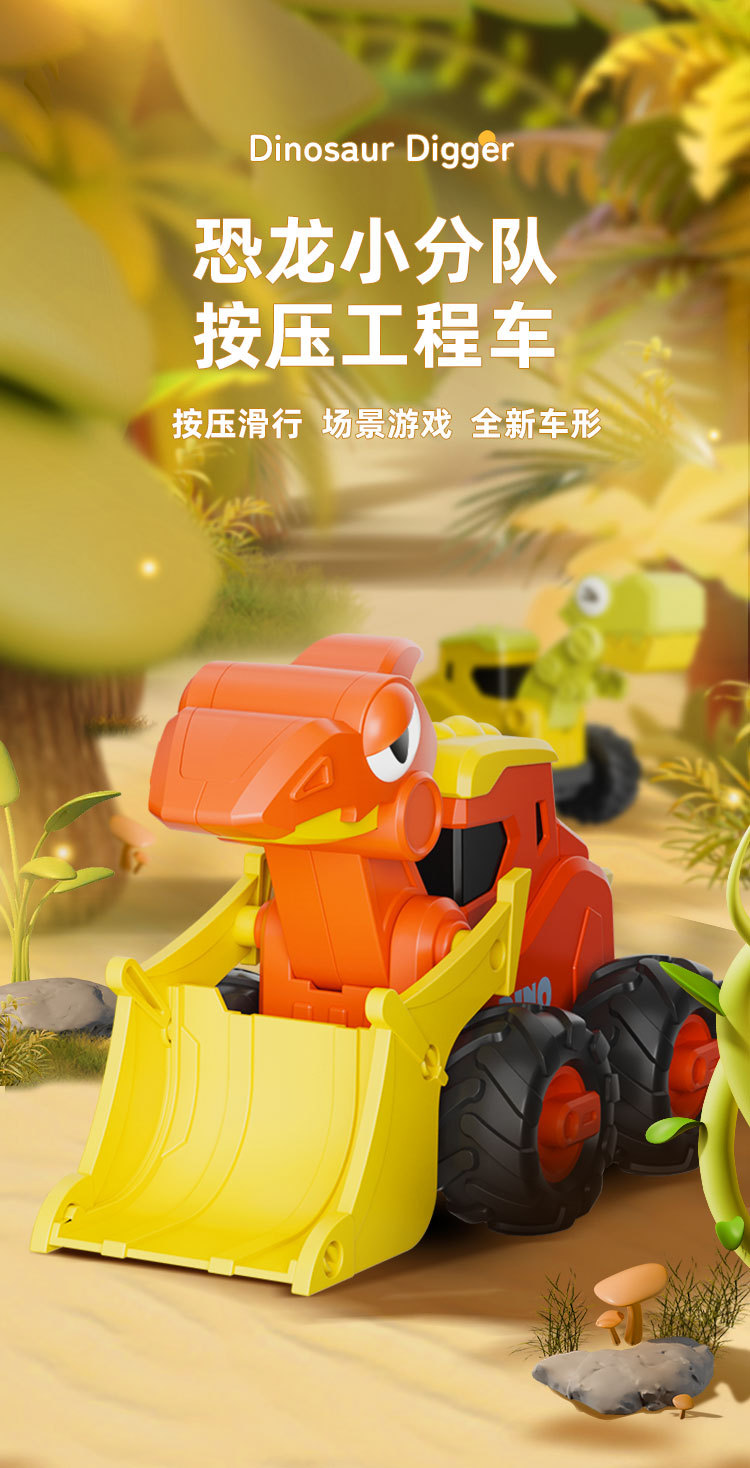 Children Press Dinosaur Engineering Vehicle Car Toy Cross-border Engineering Vehicle suit Boys and Girls Excavator Dipper Truck