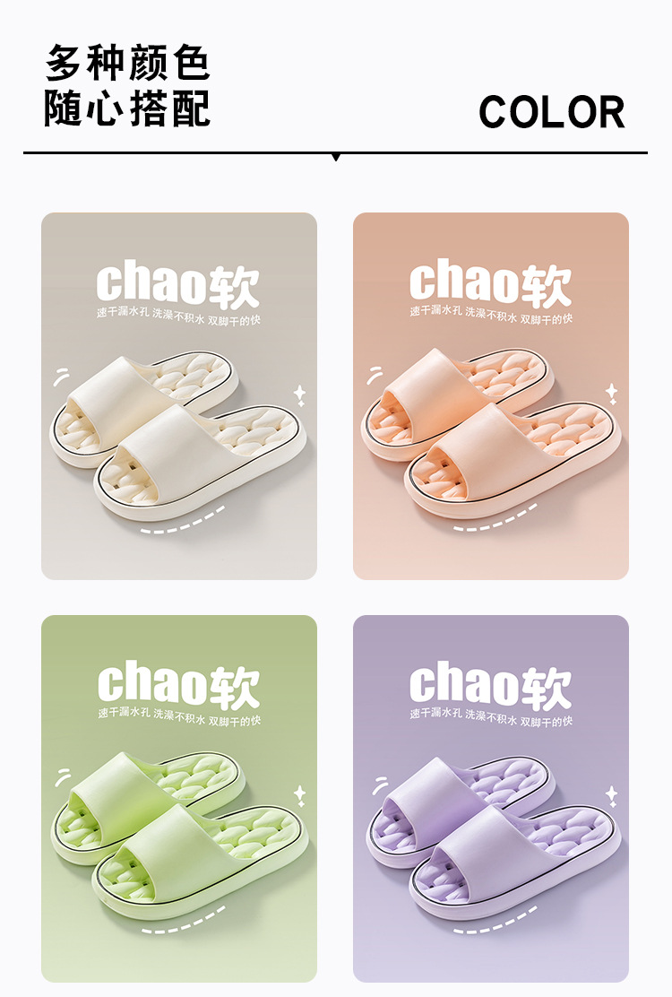 Bathroom Leakage Couple Slippers Summer Indoor Home Bath Non-Slip Hollow Quick-Dry EVA Slippers for Men