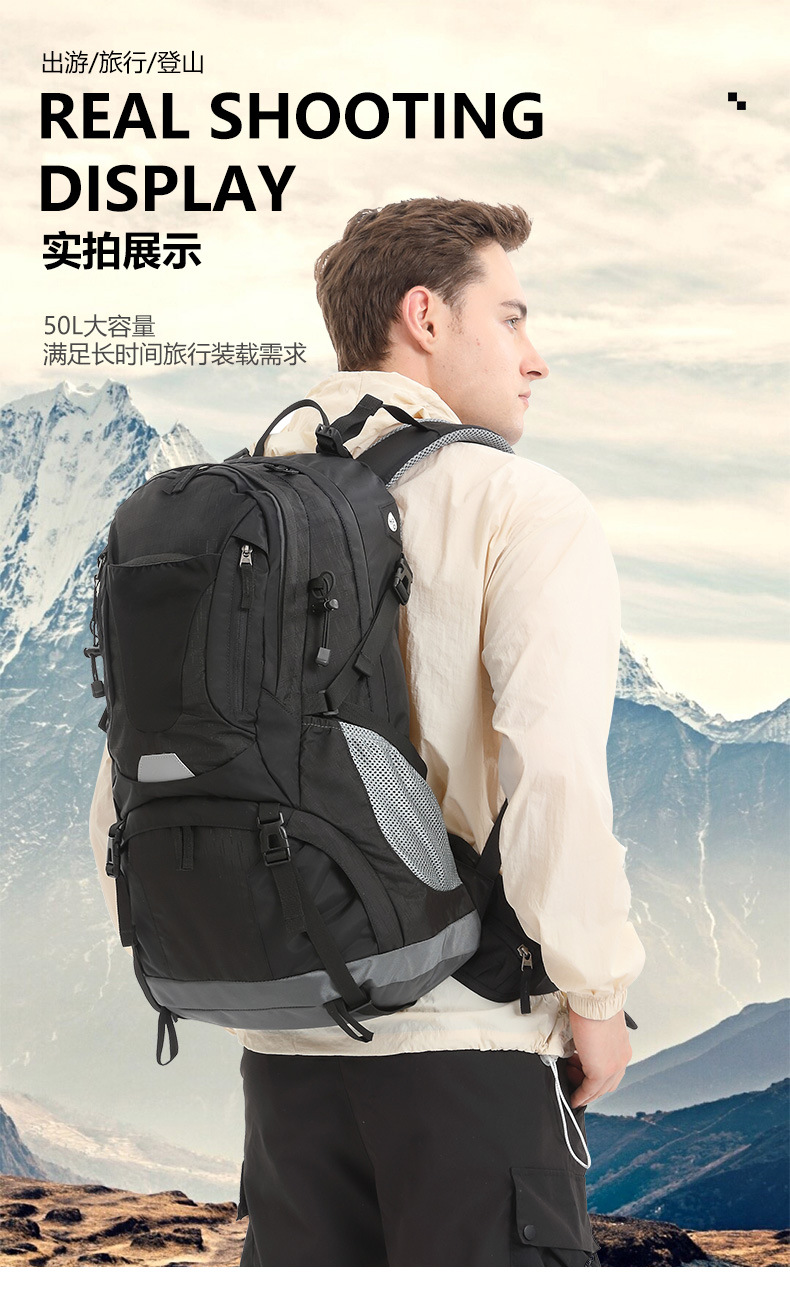 2026 New Cross-Border Outdoor Sports Backpack Mountaineering Bag 50L Men's and Women's Hiking Camping Bag Travel Backpack Gift
