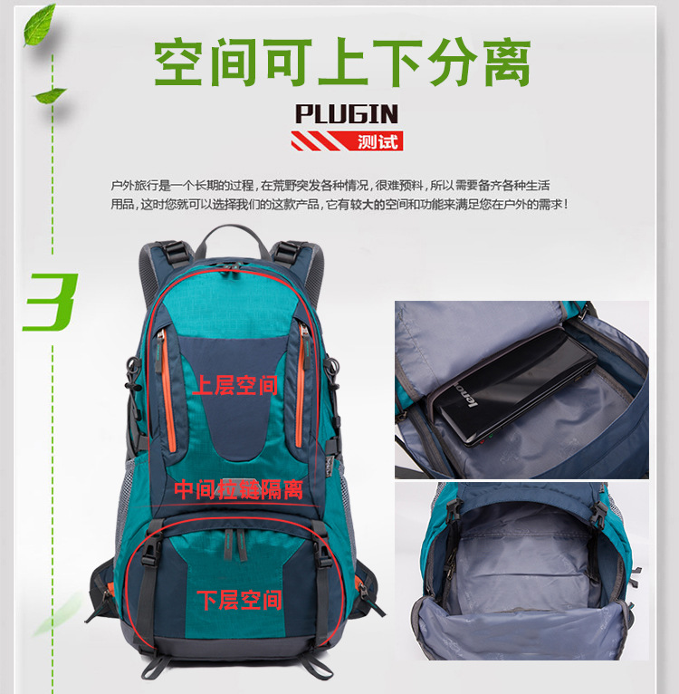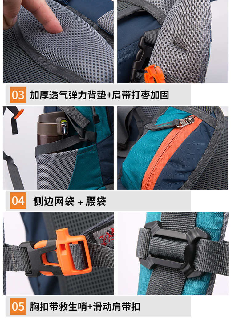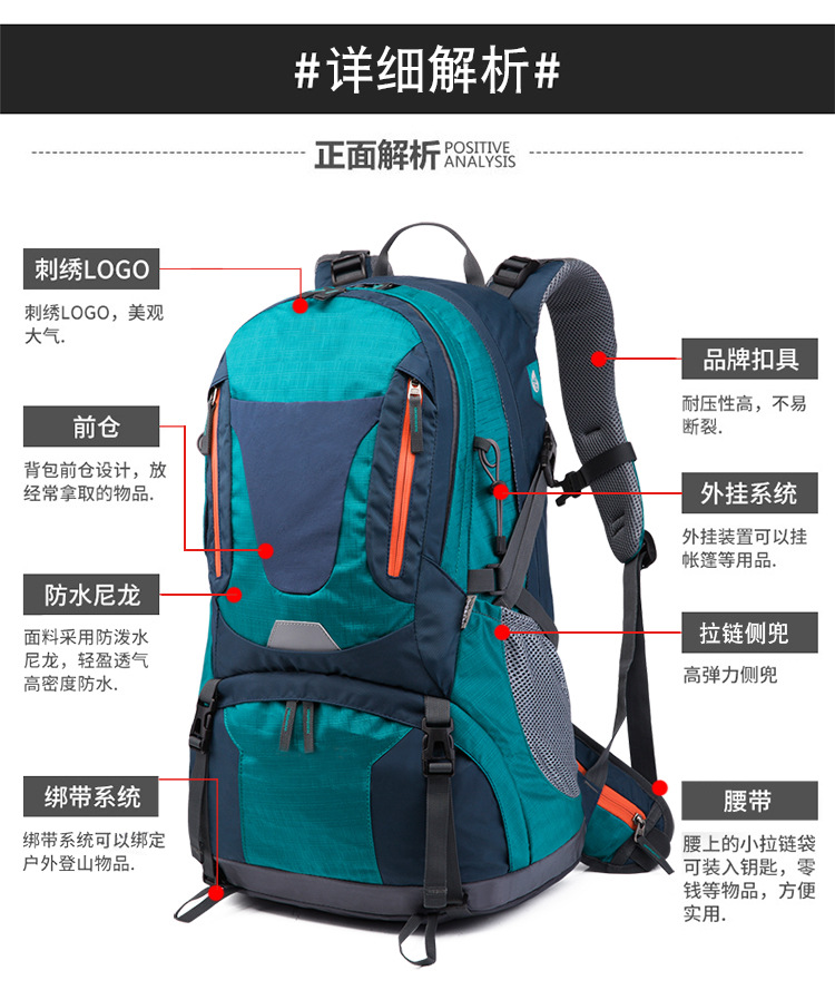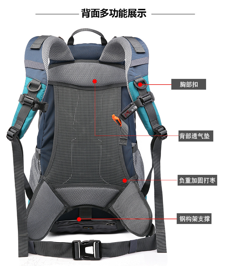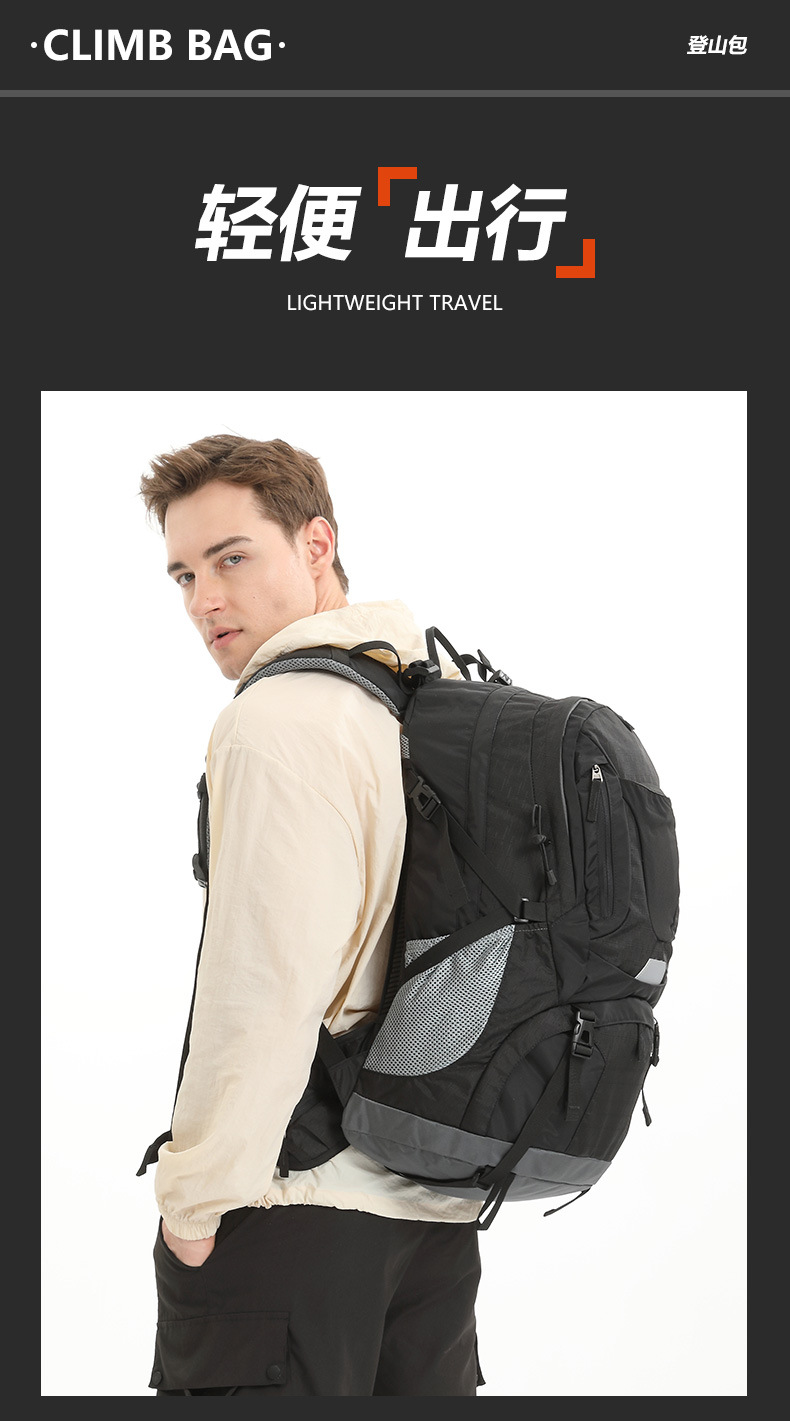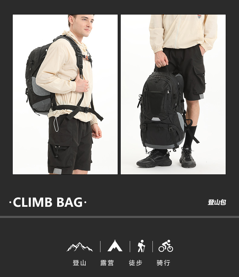| Carrying system | Physiological curve back panel | Mountain climbing bag | Outdoor hiking bag |