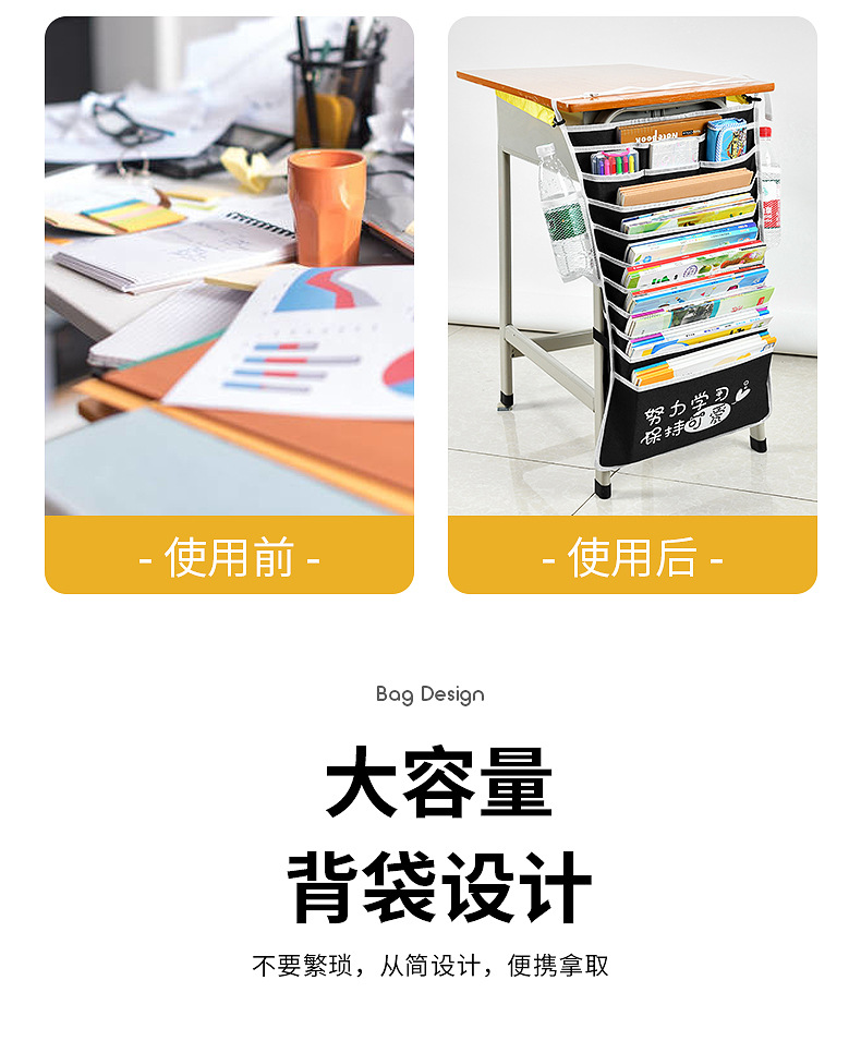 Teachers' Desk Hanging Book Bag Large Capacity Thickened Student Desk Side Book Storage Bag Junior High School Student Book Rack