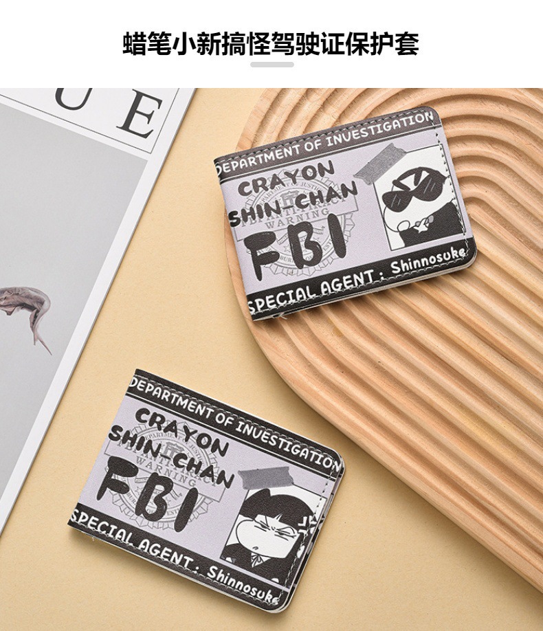 Crayon Shin Funny Driver's License Protective Cover Two-in-One Driving License Motor Vehicle Driver's License Leather Cover Gray Card Bag