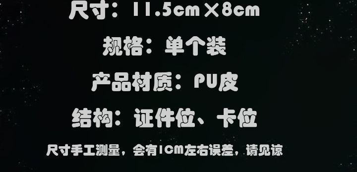 | Lining texture | pu | Color | [blind box] cartoon: driving license ultra-thin model |