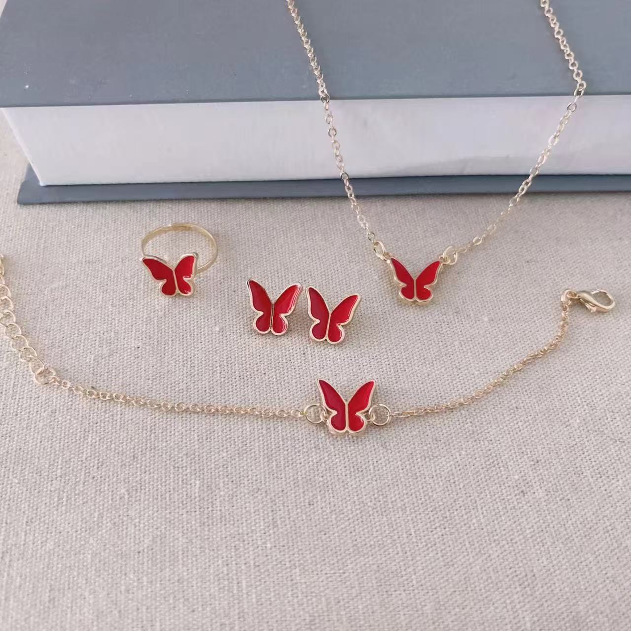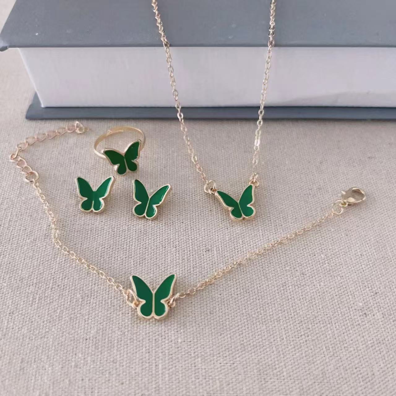 Cross-border new ladies Korean fashion Joker butterfly suit necklace bracelet ring earrings factory wholesale