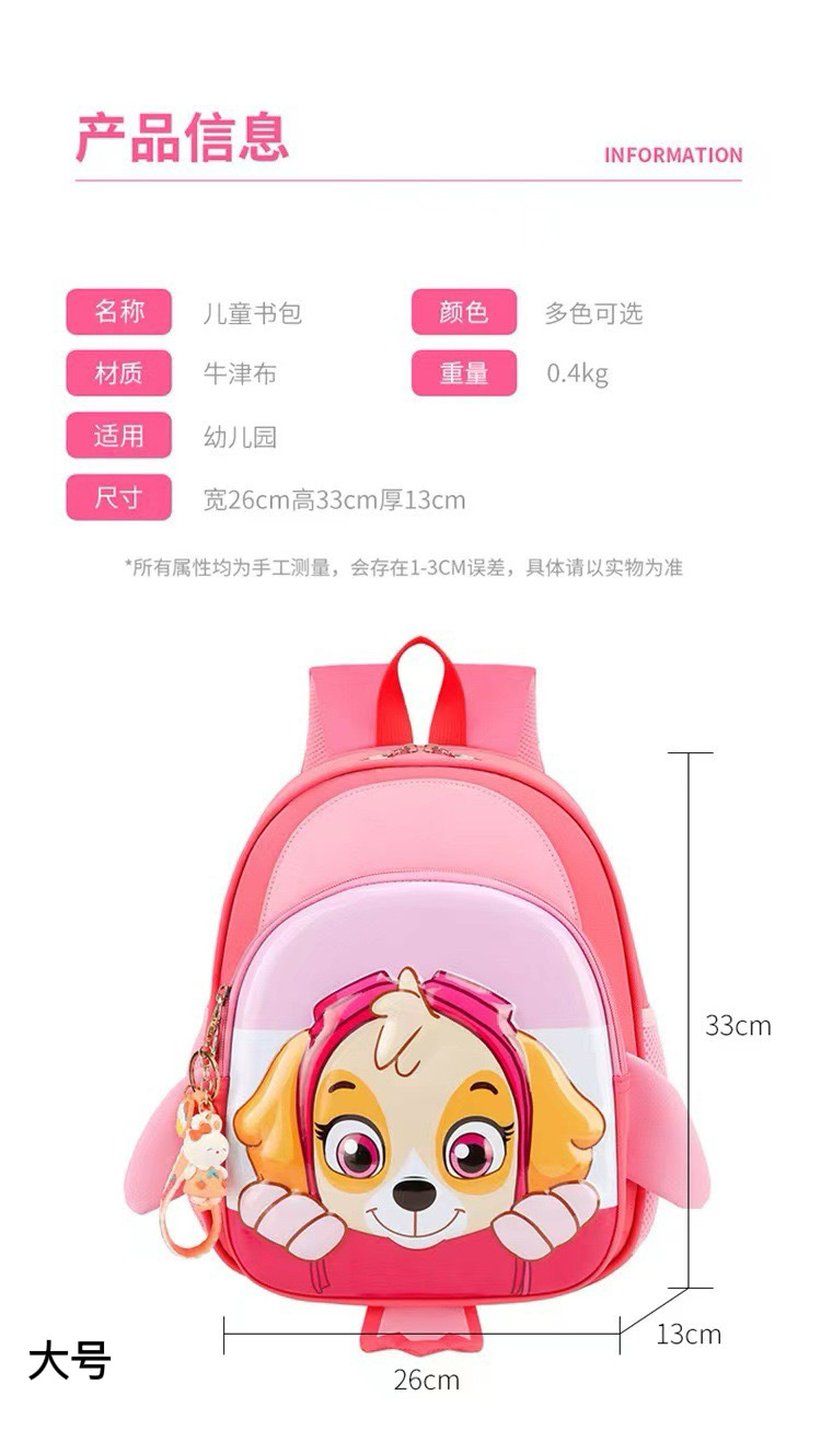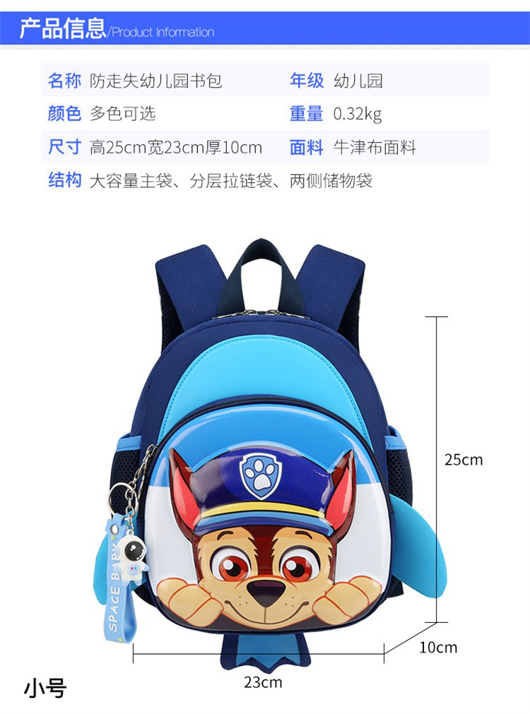 Anti-Lost School Bag 1-2-3 Years Old Kindergarten Kidsren's Backpack Cartoon Puppy Boys and Girls Preschool School Bag