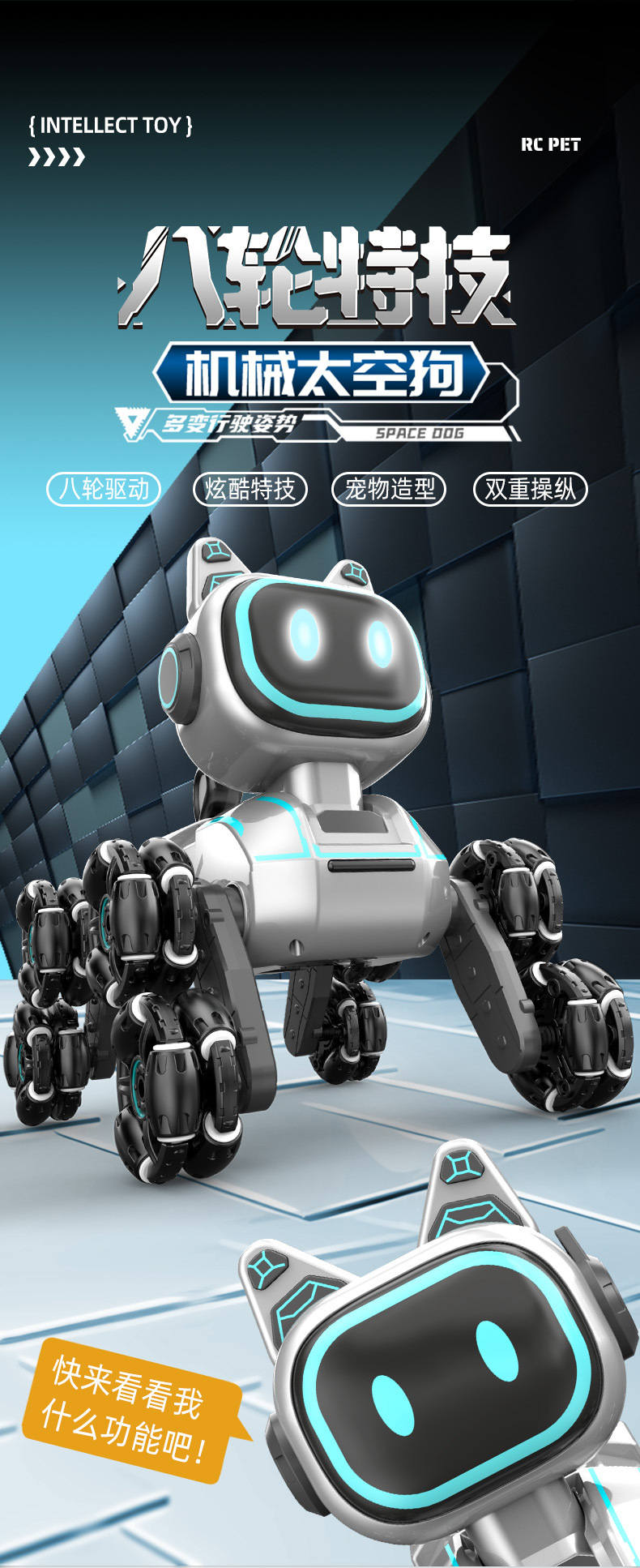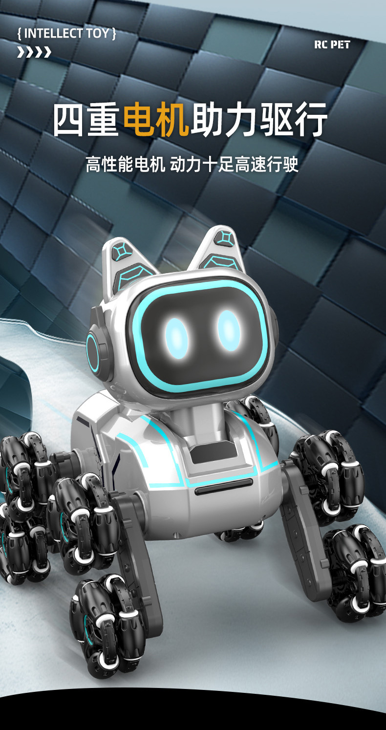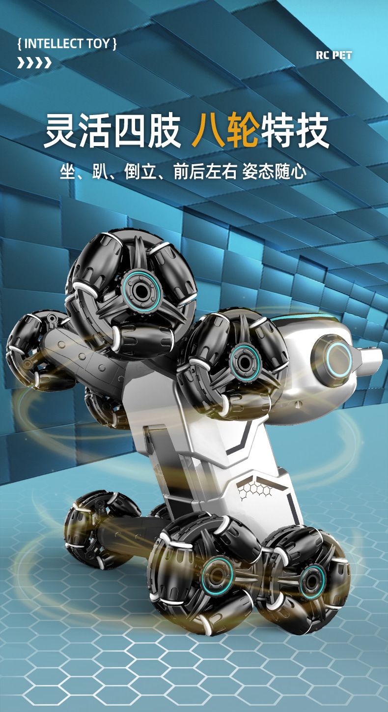 Children's Intelligent Remote Control Robot Dog Eight Wheel Stunt Mechanical Dog Light Music Toy Gesture Sensing Remote Control Car