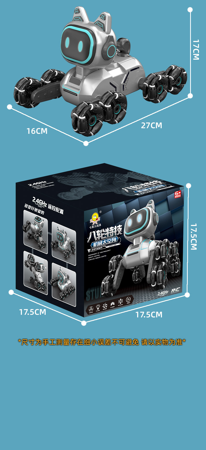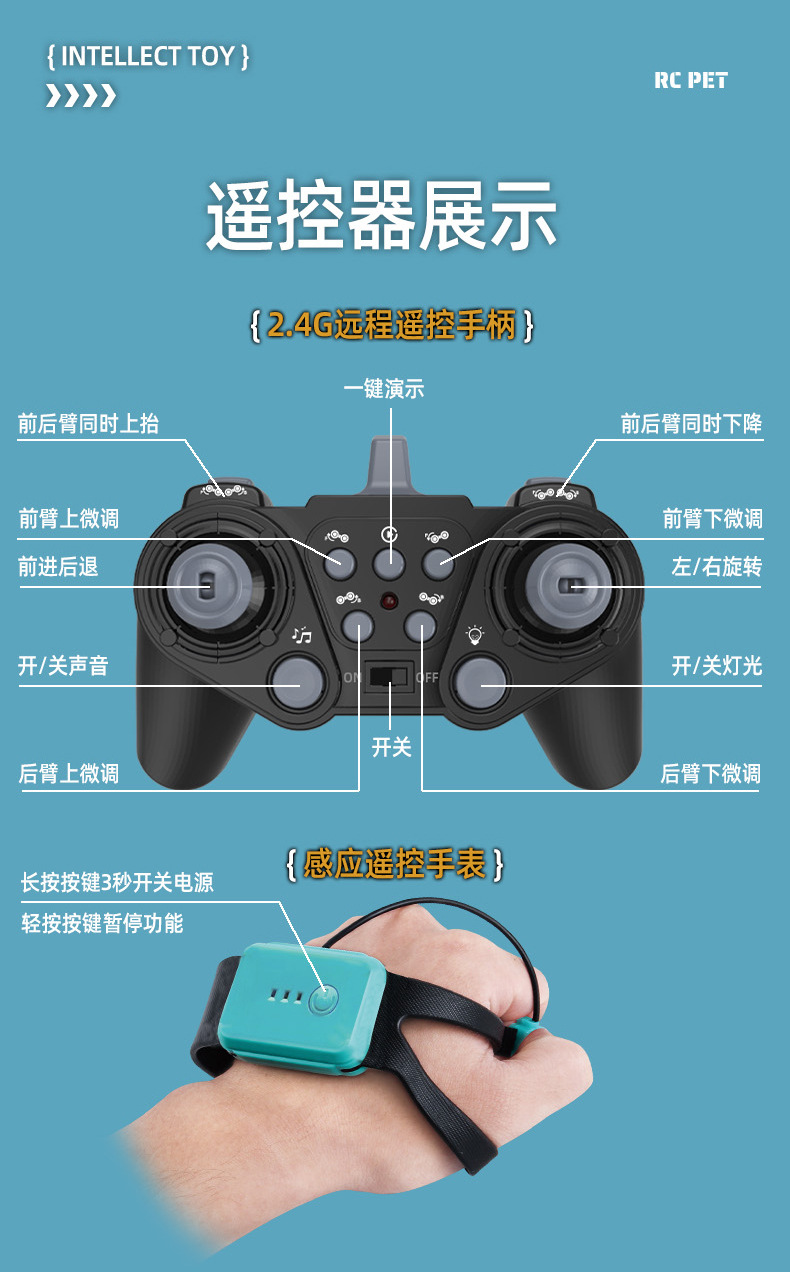 | Color | 100% positive reviews black eight-wheeled stunt robot dog [handle remote control + exquisite gift box] | Color | 100% positive reviews upgraded model - black eight-wheel stunt robot dog [handle remote control + gesture sensor watch remote control + exquisite gift box] |