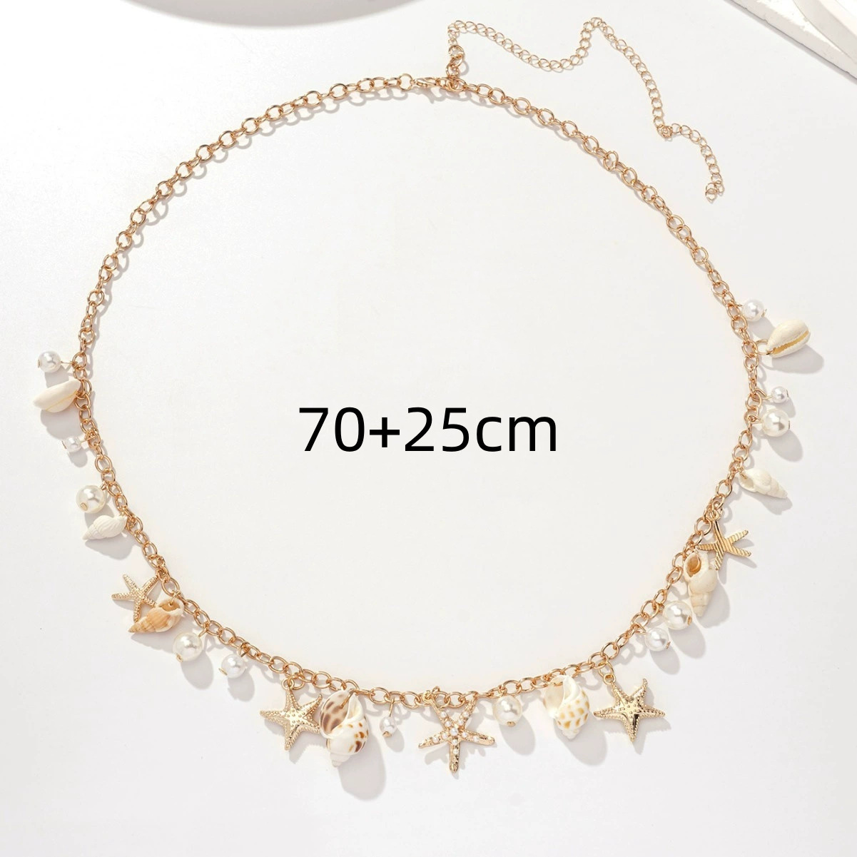 European and American Bohemian Beach Conch Shell Waist Chain Women Sexy Bikini Starfish Pearl Body Chain Accessories
