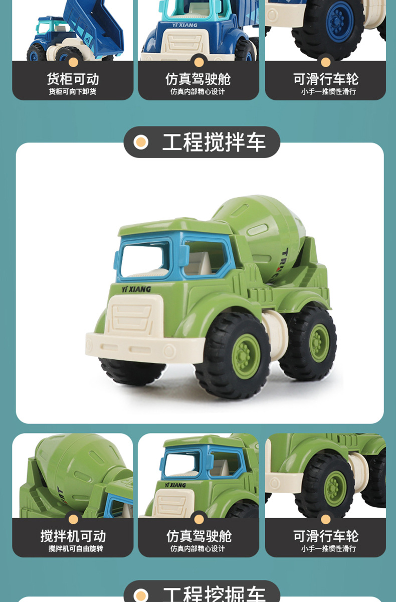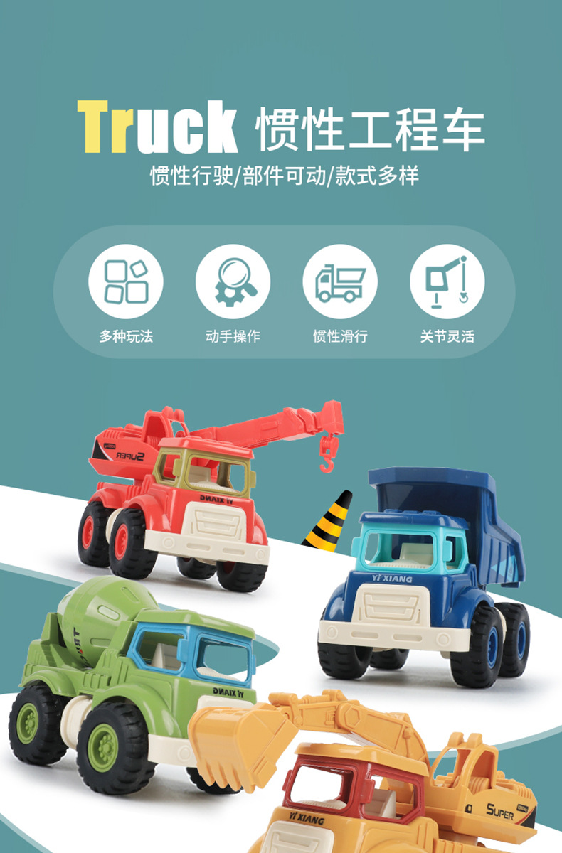 Children's Toy Engineering Vehicle Simulation Excavator Dumper Truck Crane Mixer Inertia Driving Boys Small Toys