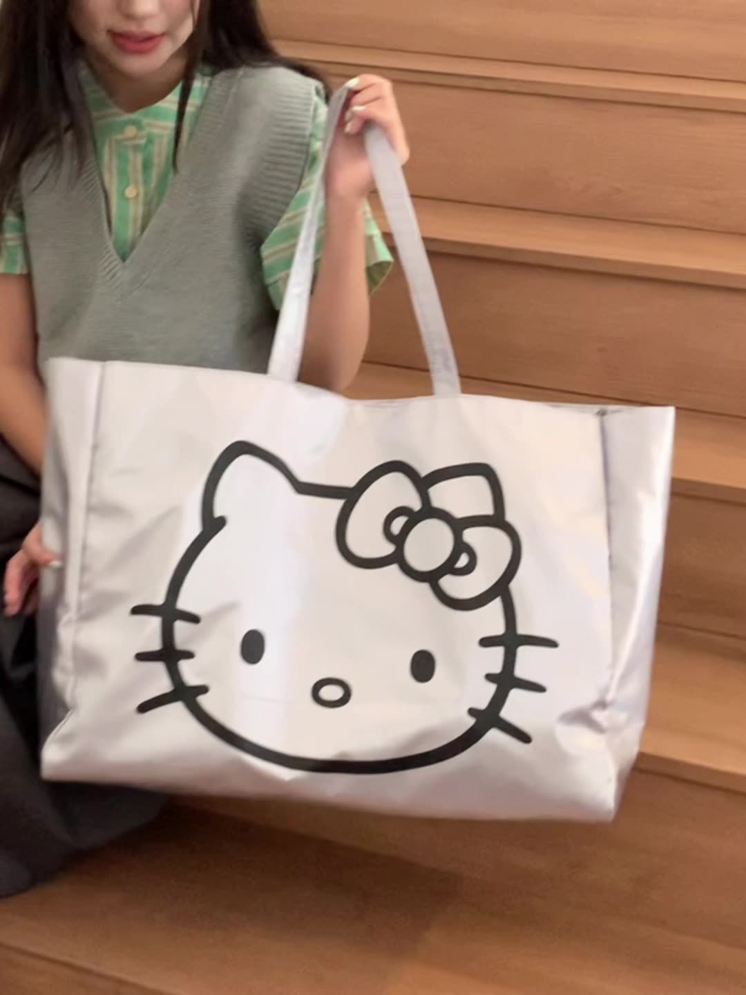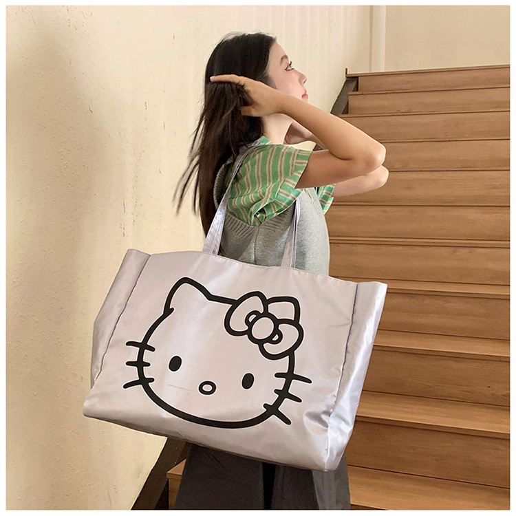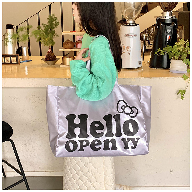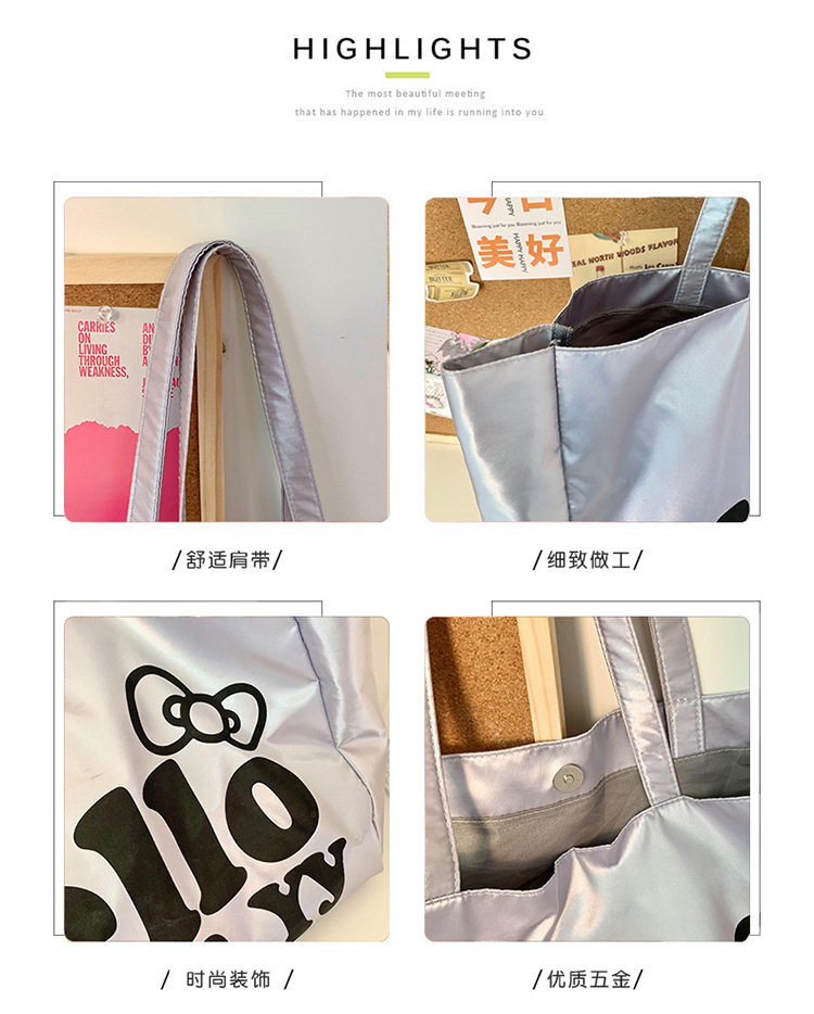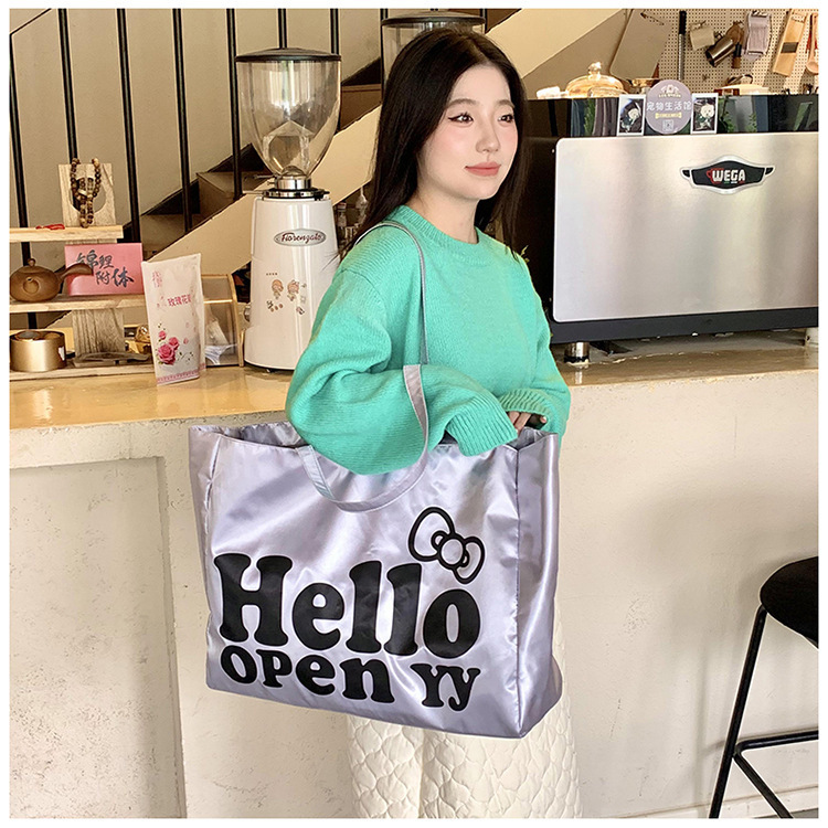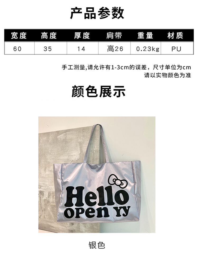 New Women's Bag Niche silver Laser Large Capacity Tote Bag Cartoon Cute College Student Class Commuter Shoulder Bag