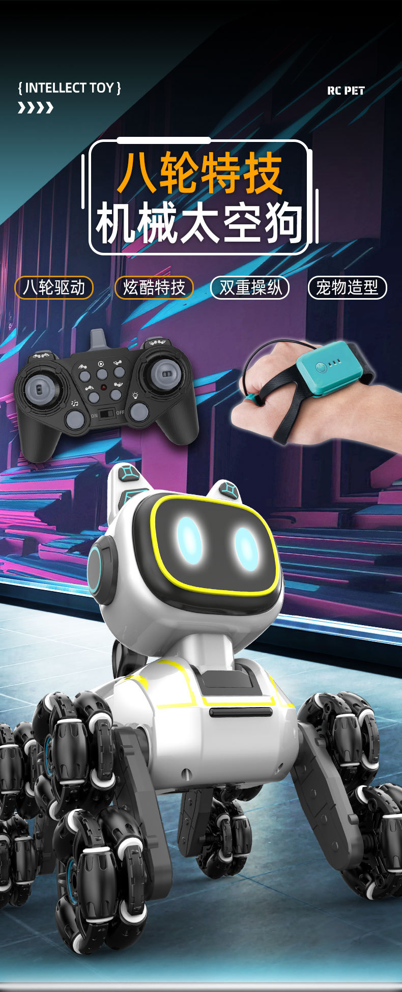 Cross-border new product remote control mechanical dog children's toy gesture sensing four-wheel climbing drift eight-wheel stunt remote control car