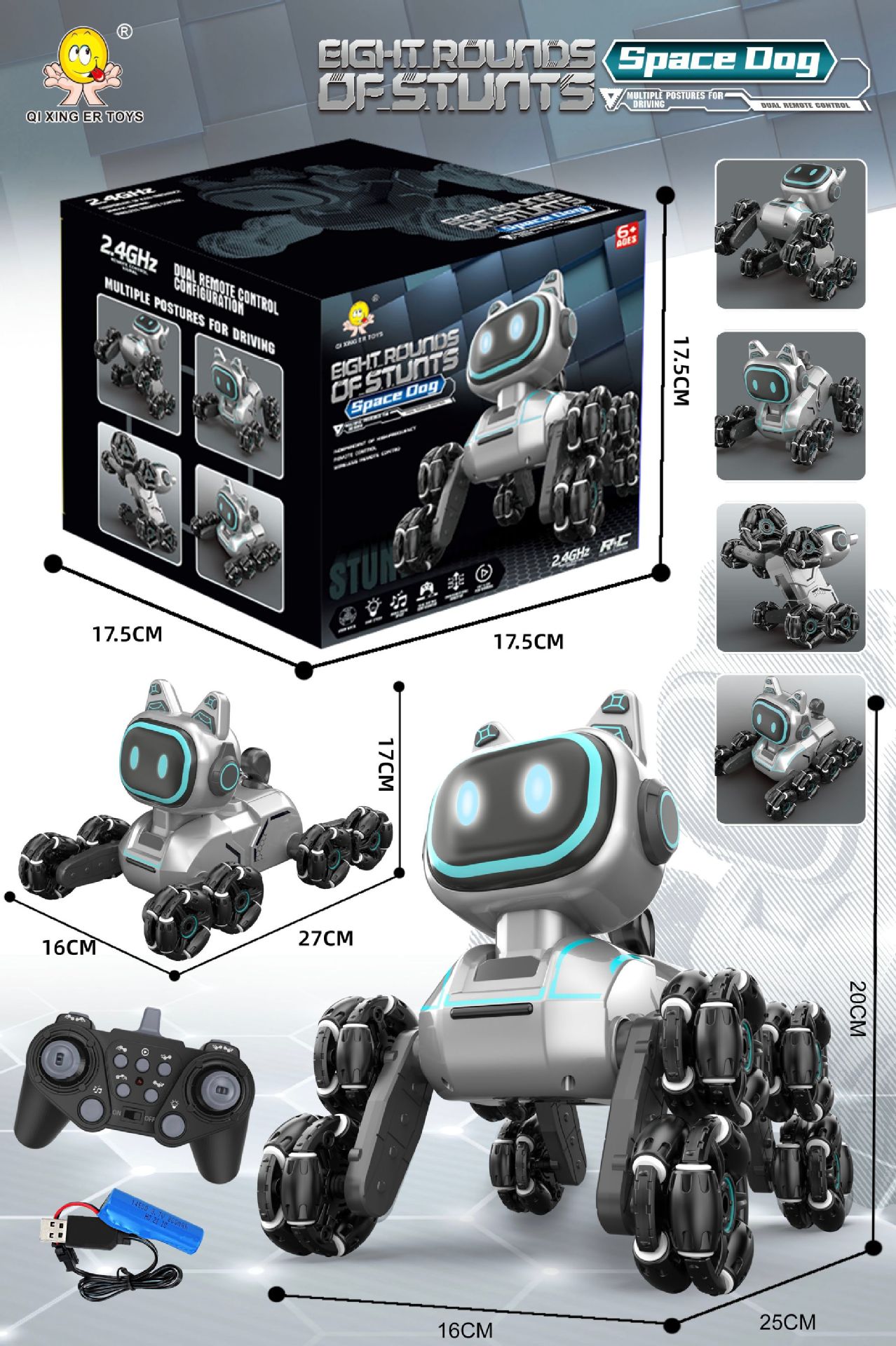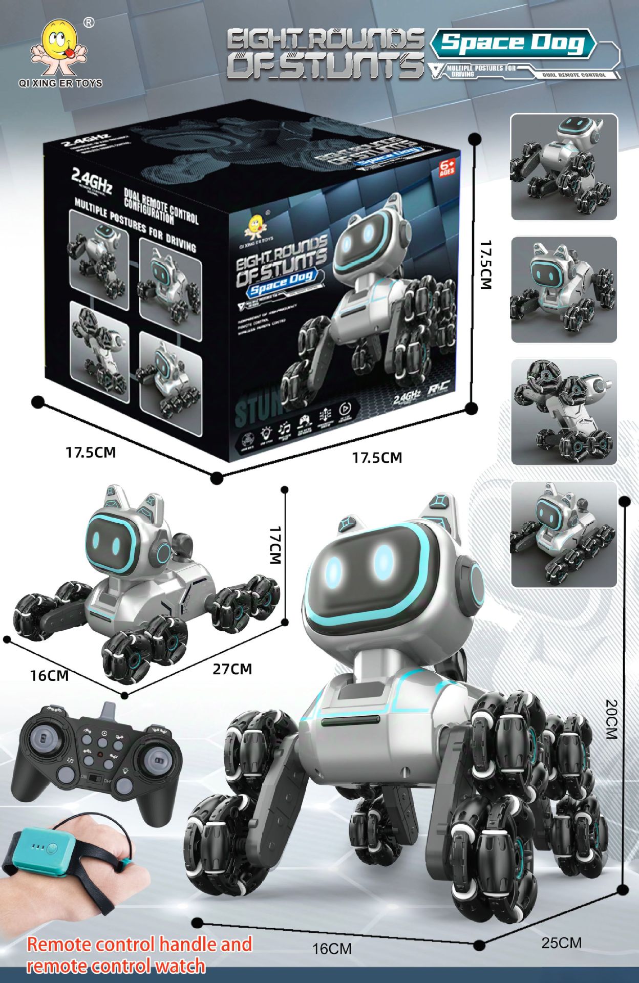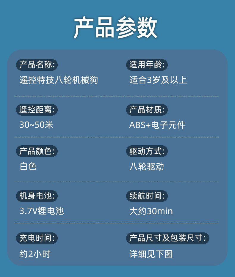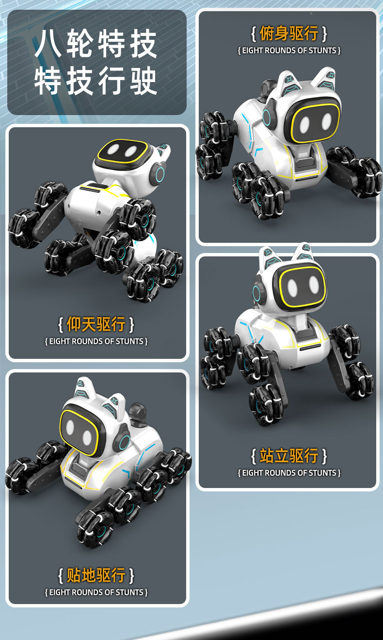 | Color | Cross-border eight-wheeled stunt car mechanical dog [white single control] sealed color box | Color | Cross-border eight-wheeled stunt car mechanical dog [silver gray single control] sealed color box |