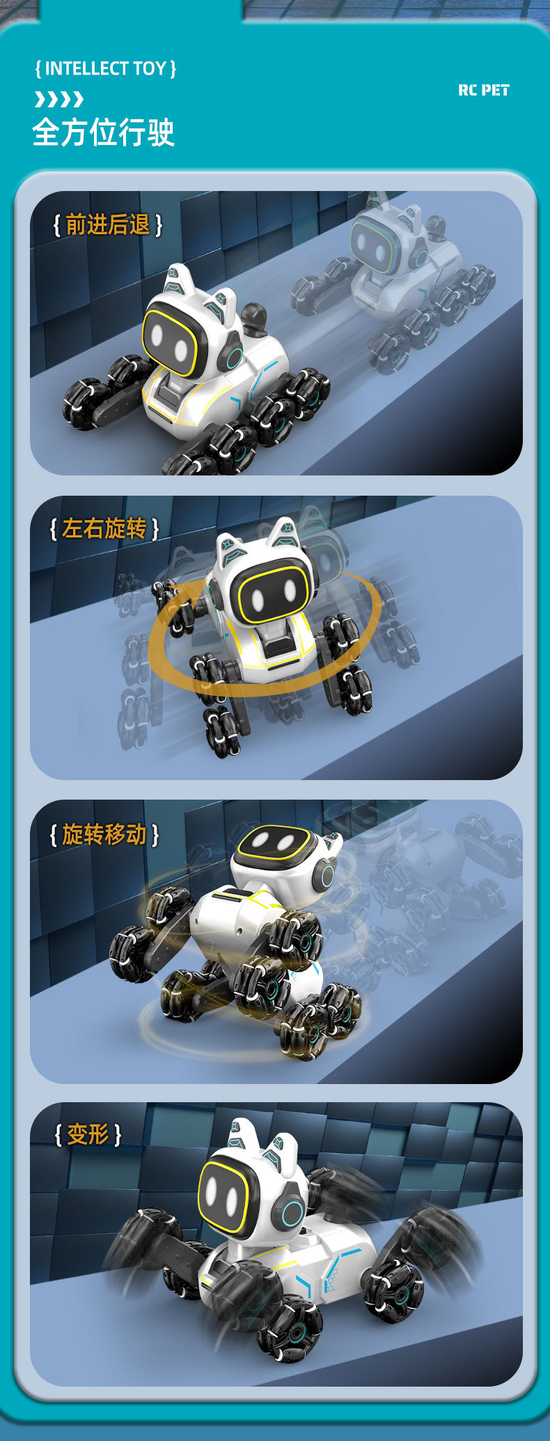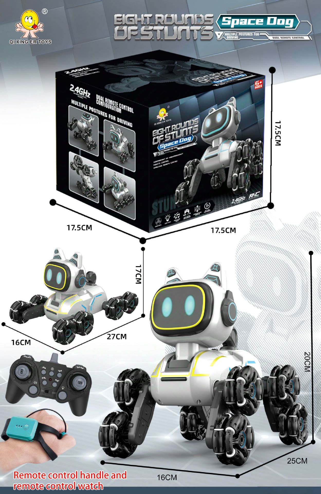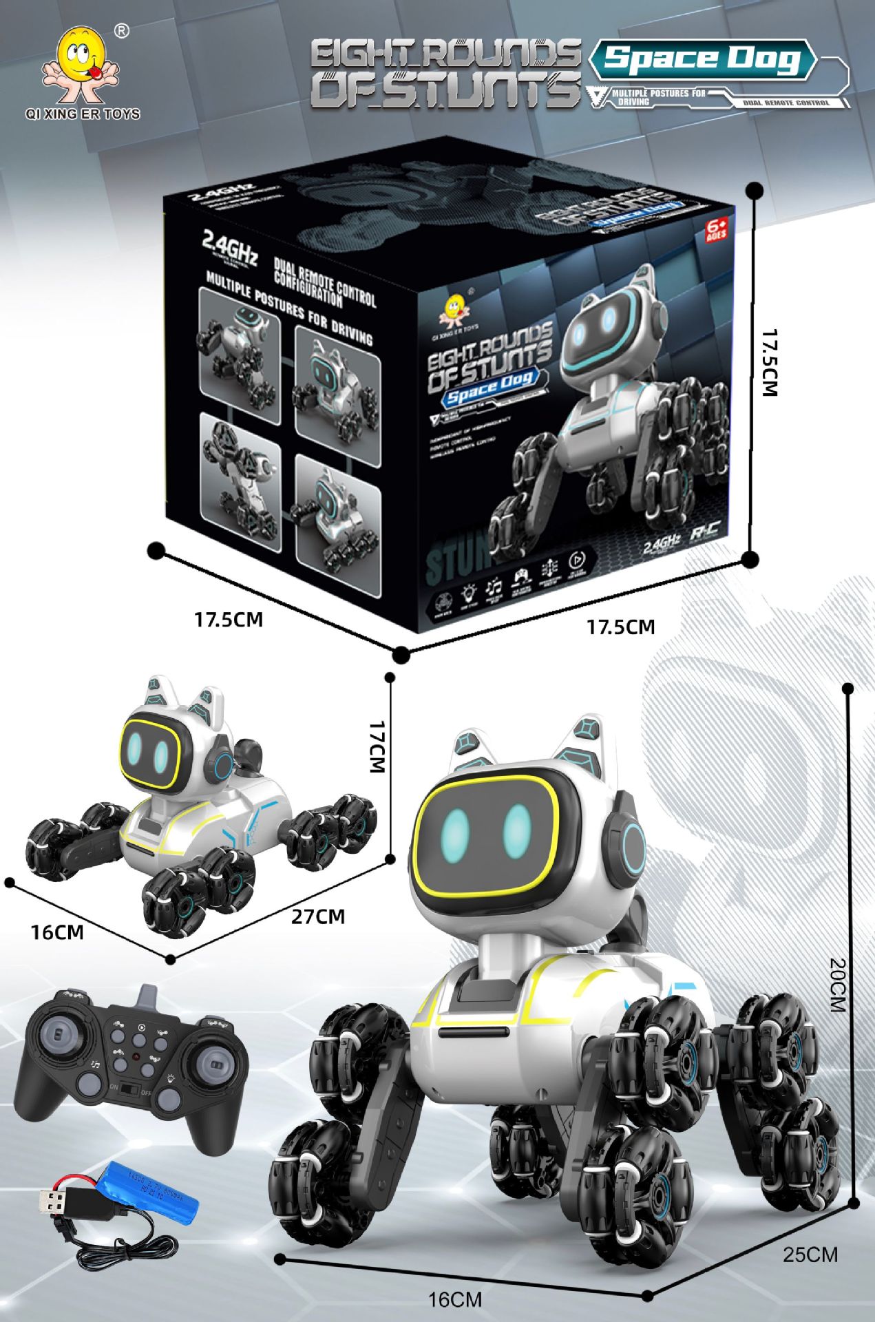 | Color | Cross-border eight-wheeled stunt car mechanical dog [white single control] sealed color box | Color | Cross-border eight-wheeled stunt car mechanical dog [silver gray single control] sealed color box |