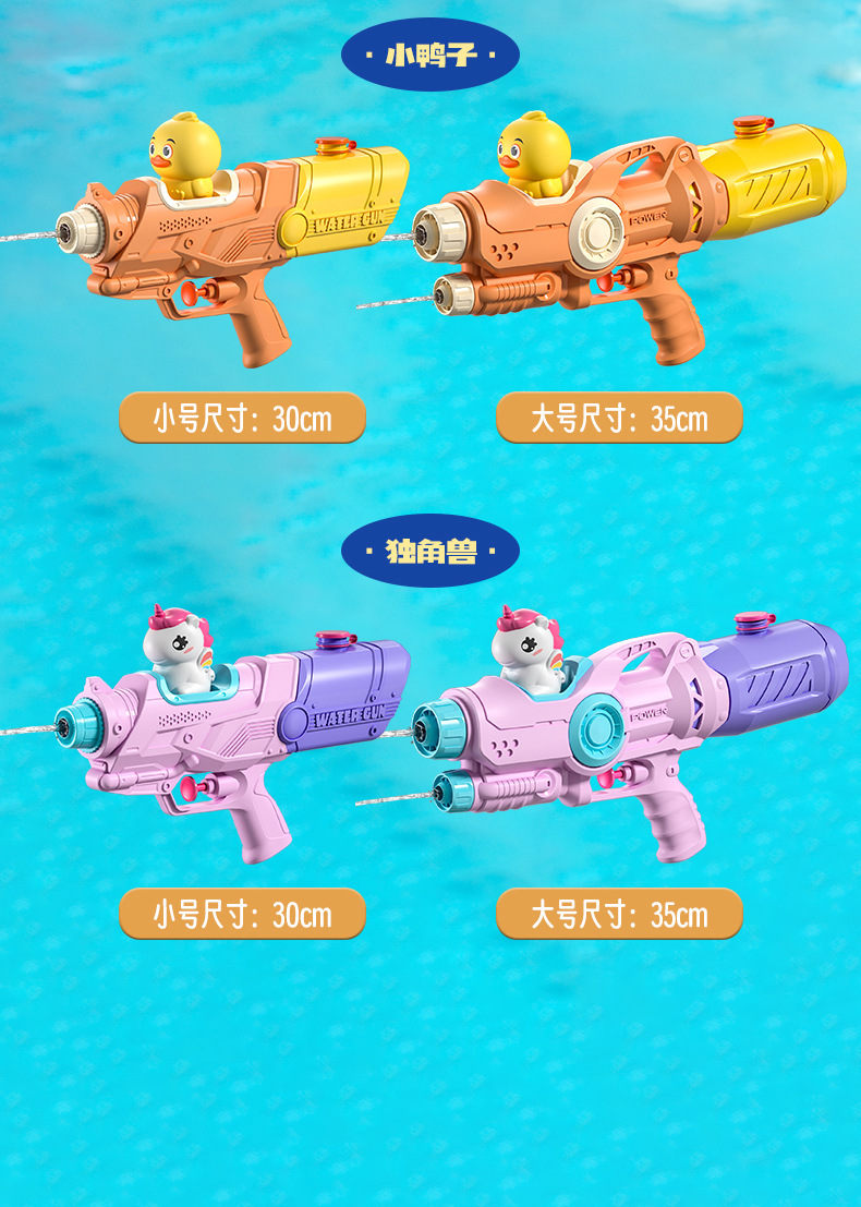 | Color | [single nozzle] cartoon doll duck water gun-yellow | Color | [double nozzles] cute unicorn water gun-pink |