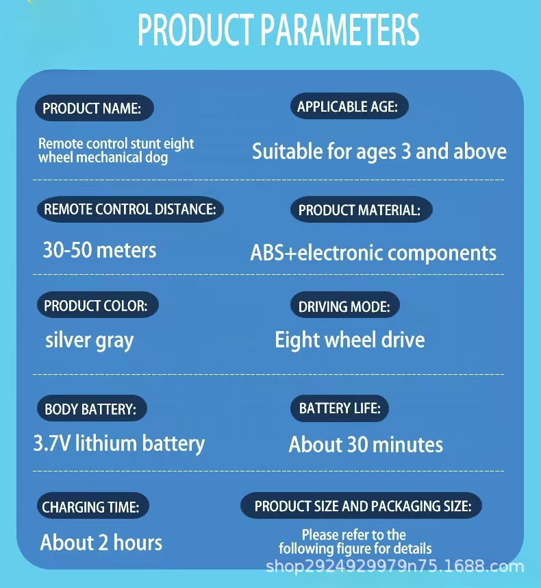 | Color | Eight-wheel stunt mechanical dog english packaging upgraded version [handle remote control + watch sensor remote control] | Main downstream platforms | wish |