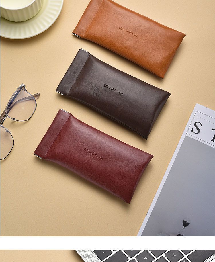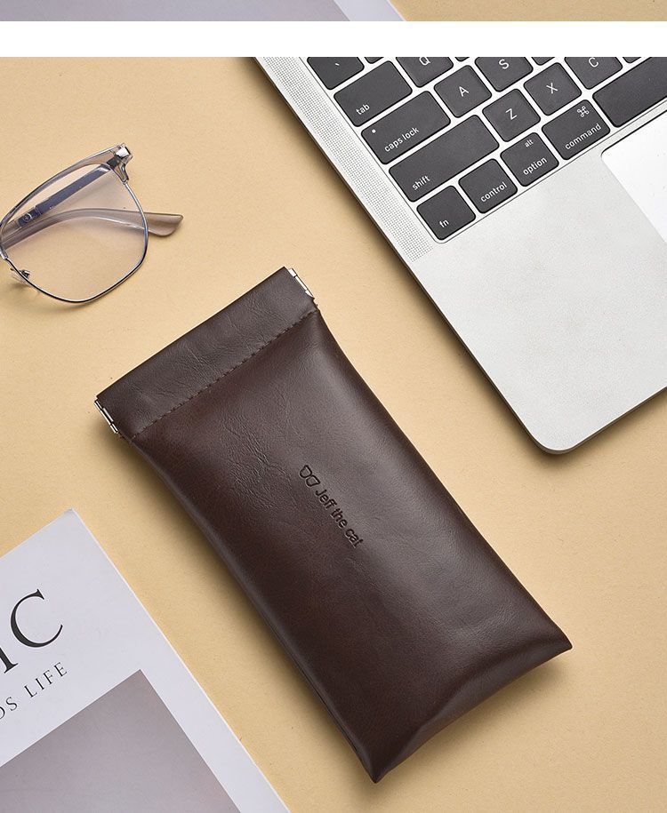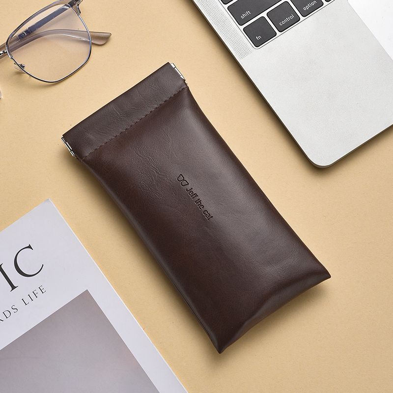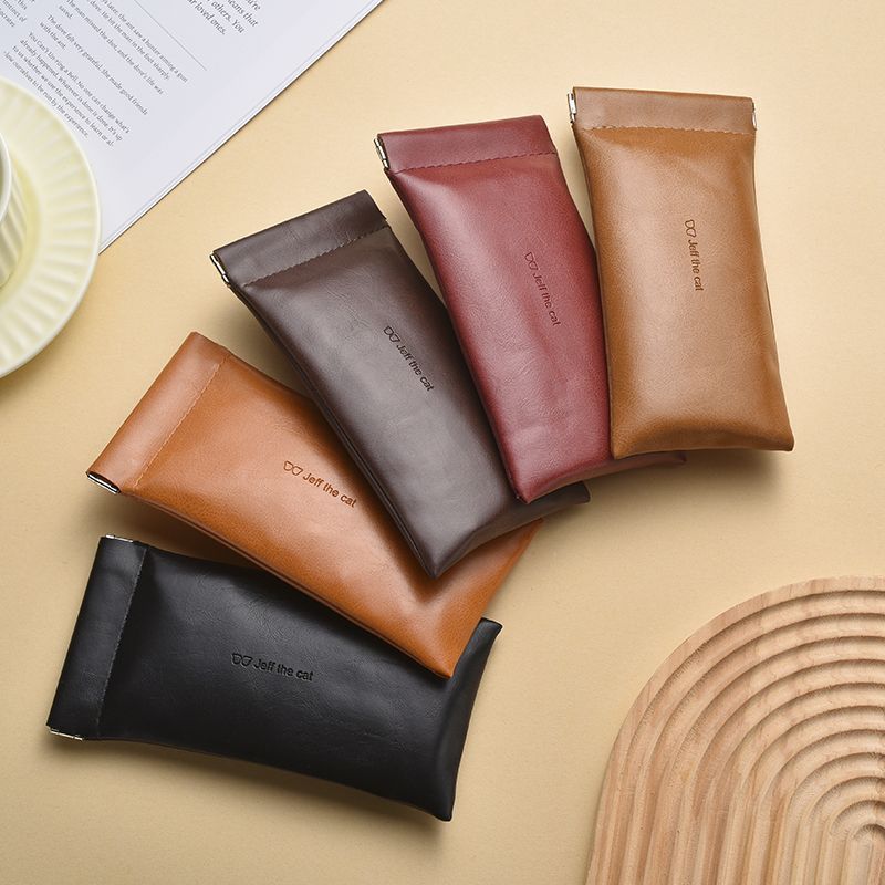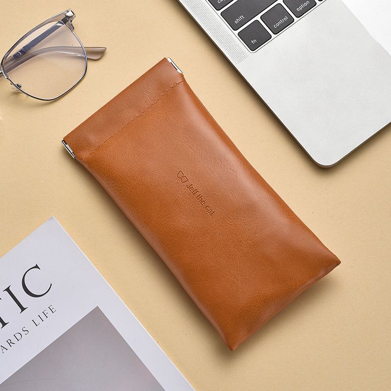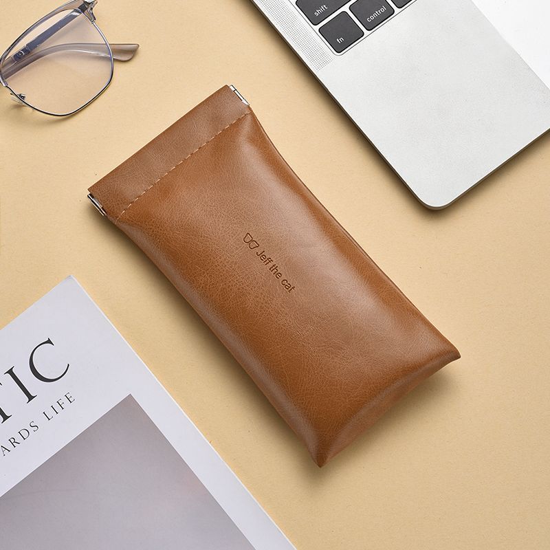 Self-closing glasses bag portable small fresh sunglasses leather handbag unisex glasses case elastic pocket
