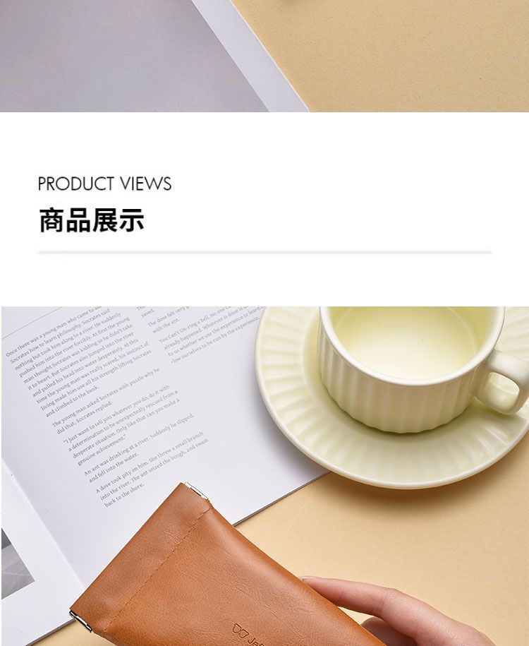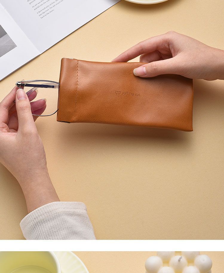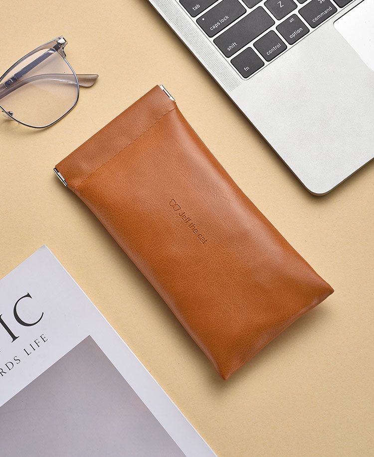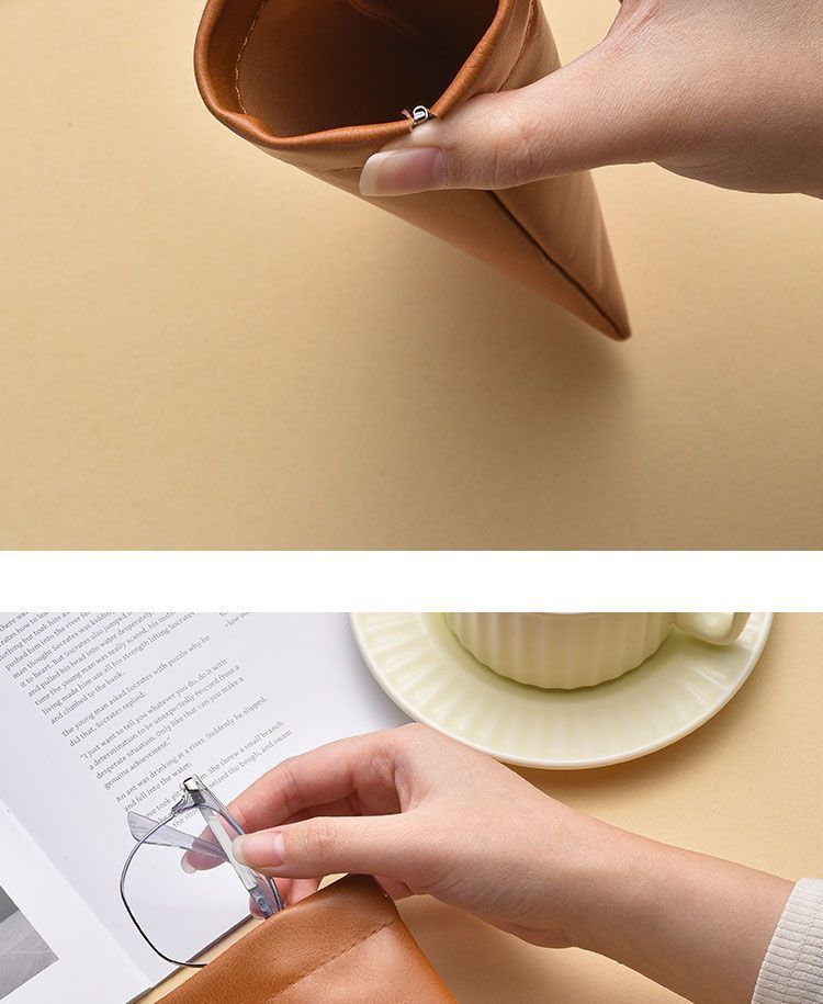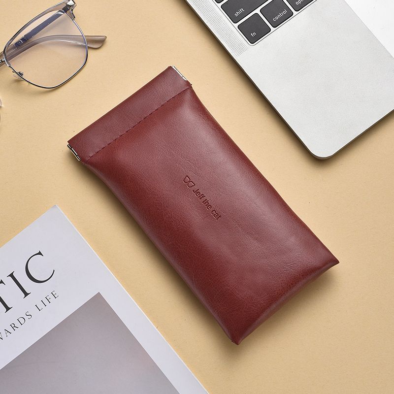Self-closing glasses bag portable small fresh sunglasses leather handbag unisex glasses case elastic pocket
