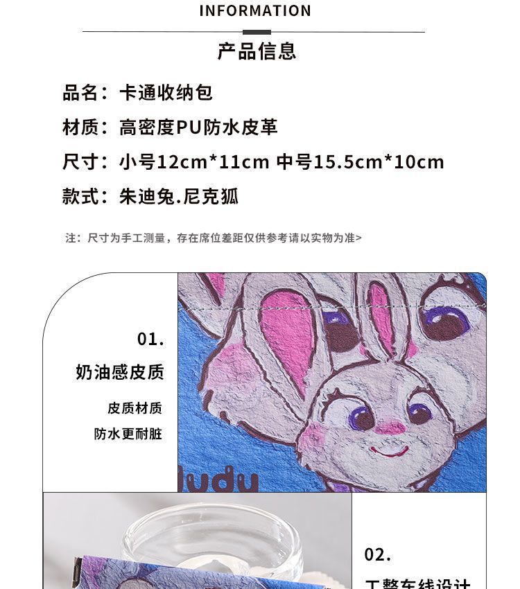 2025 New Judy Rabbit Cartoon Storage Bag Portable Lipstick Headset Coin Purse Cosmetic Bag Automatic Closure
