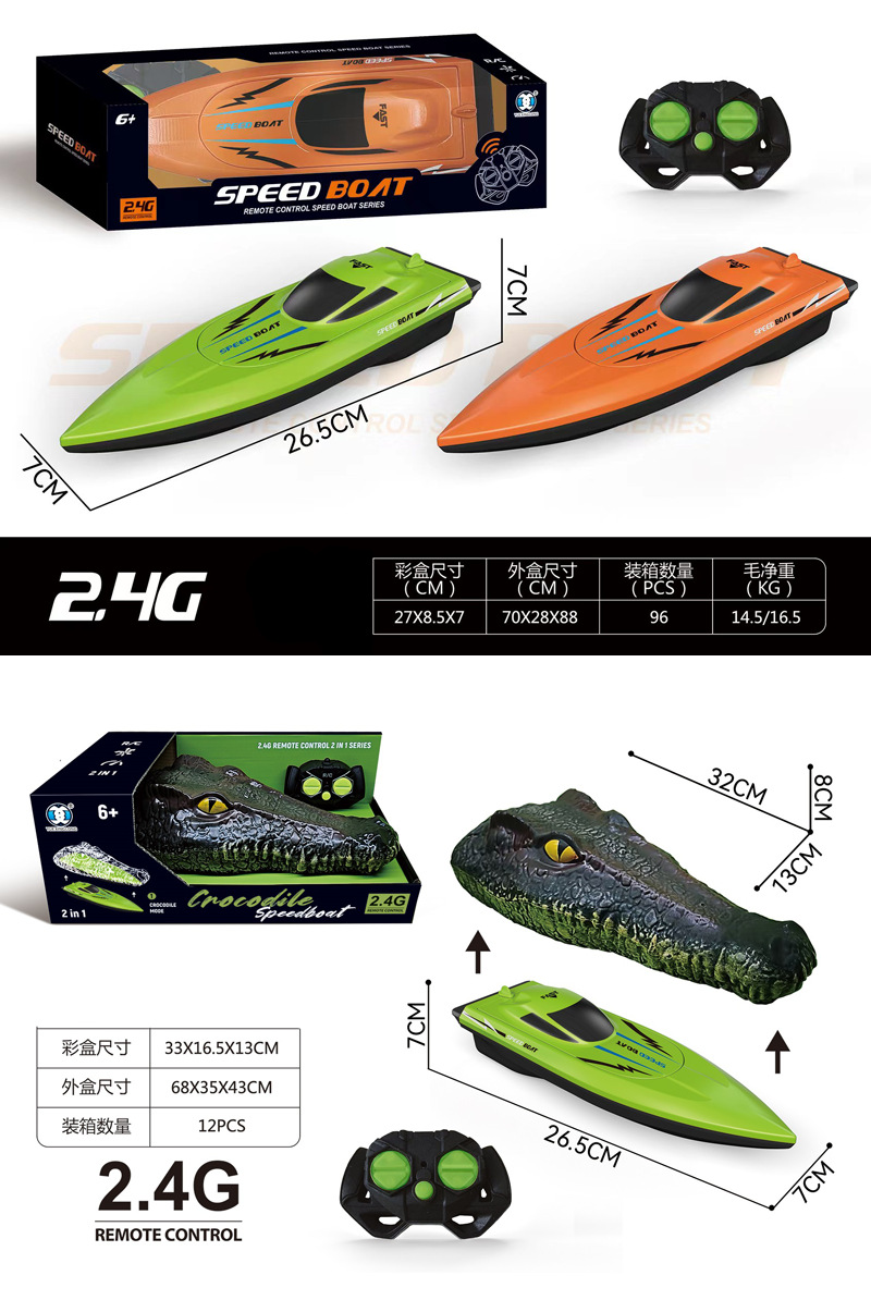 | Color | Upgraded 2.4g green [26cm scull] remote control high-speed boat | Color | 2-in-1 remote control tricky crocodile + speed boat [32cm scull] upgraded to 2.4g |