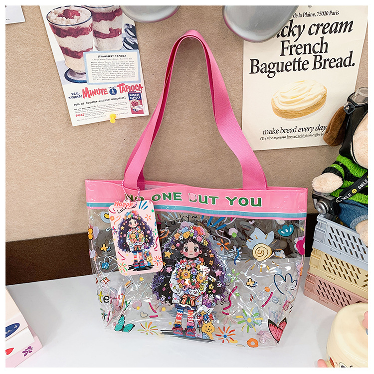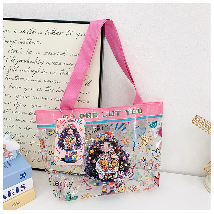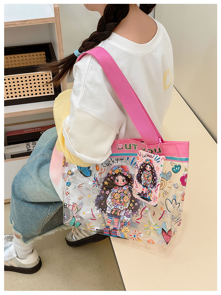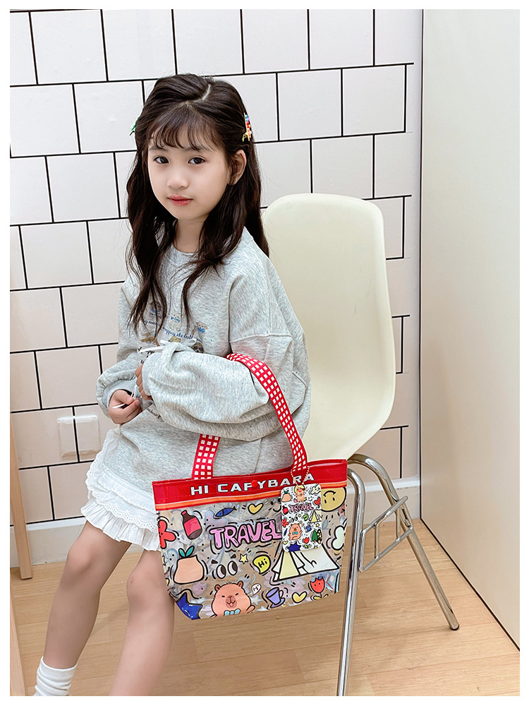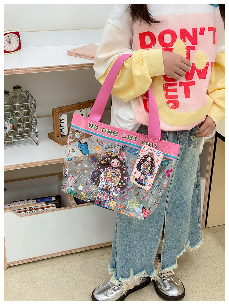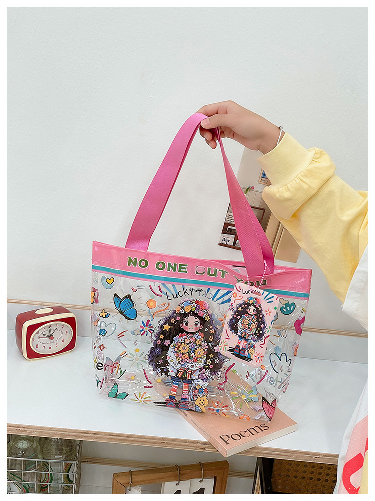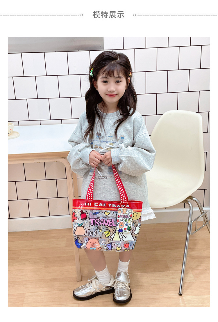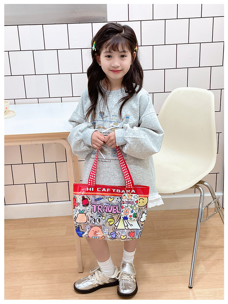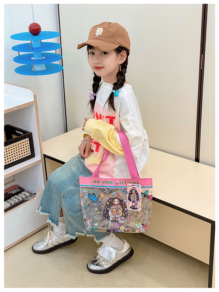 Wholesale transparent cute cartoon children's bag large capacity high value handbag summer shoulder beach jelly bag tide