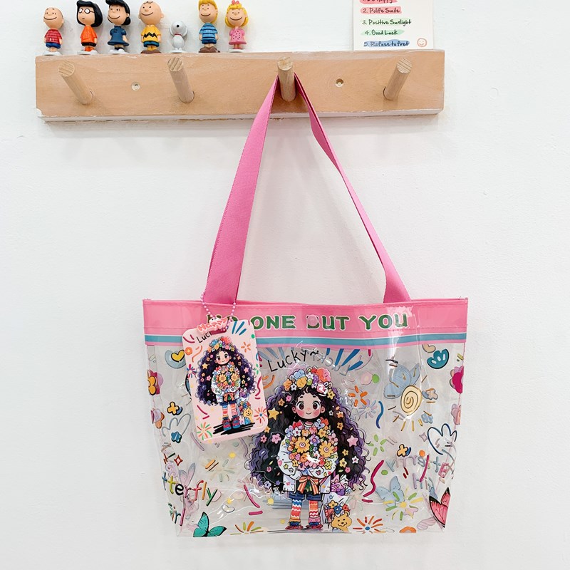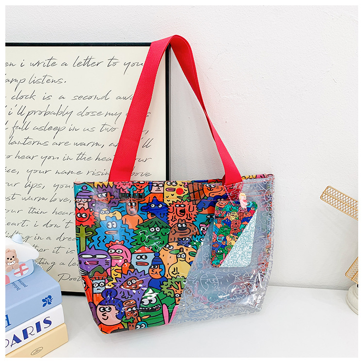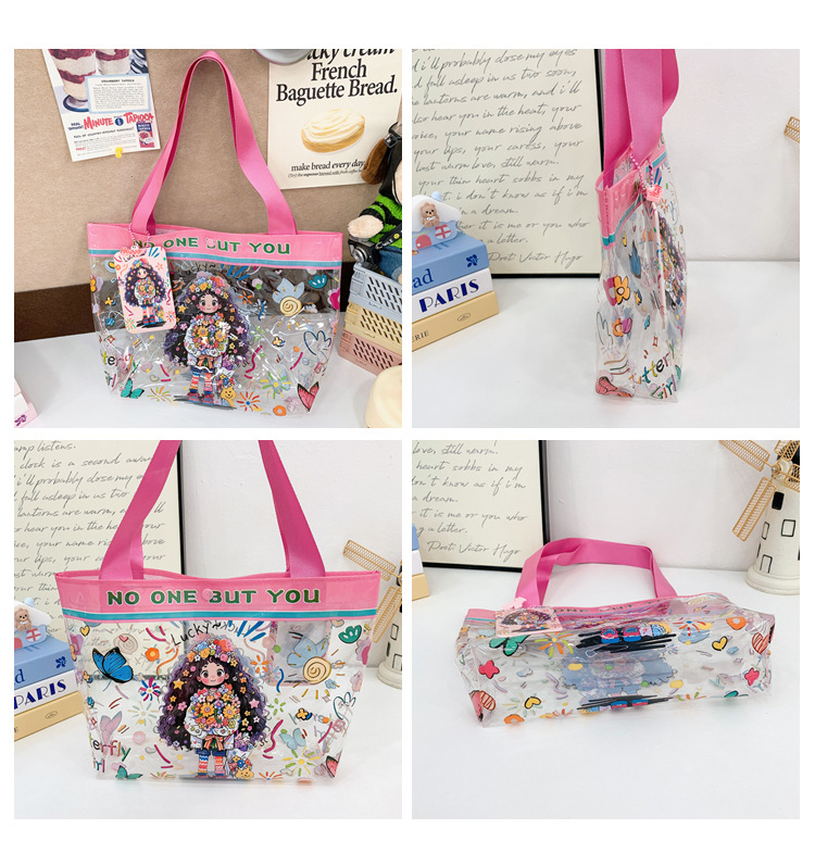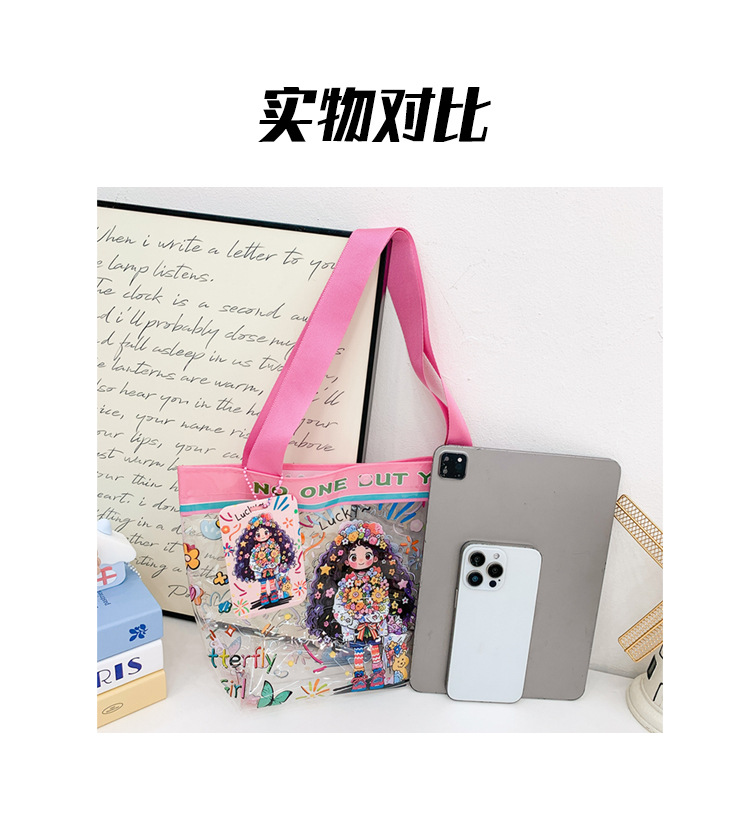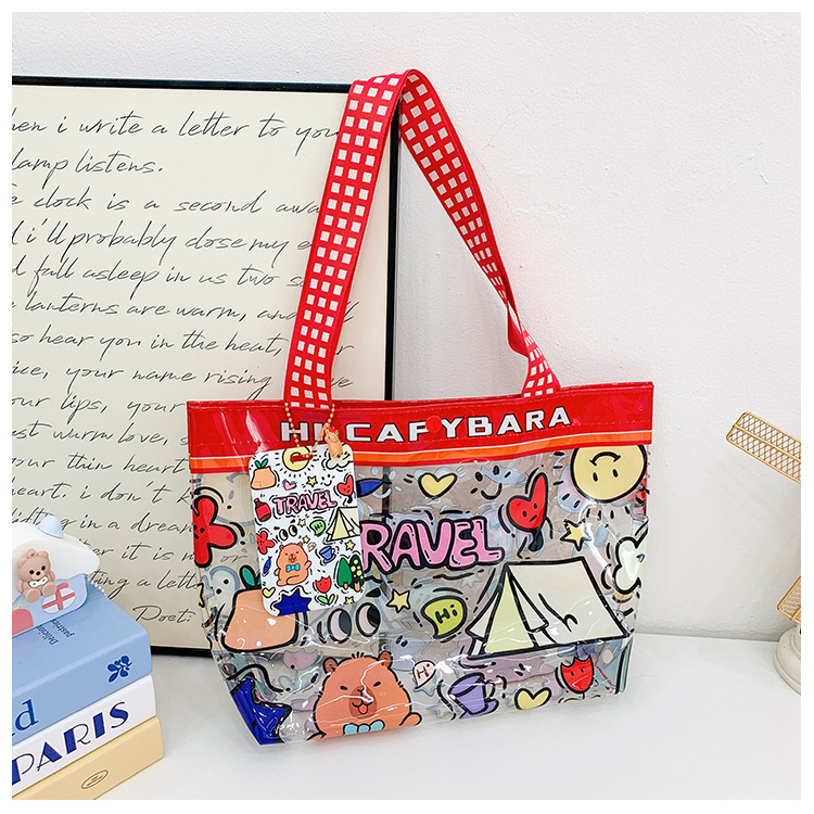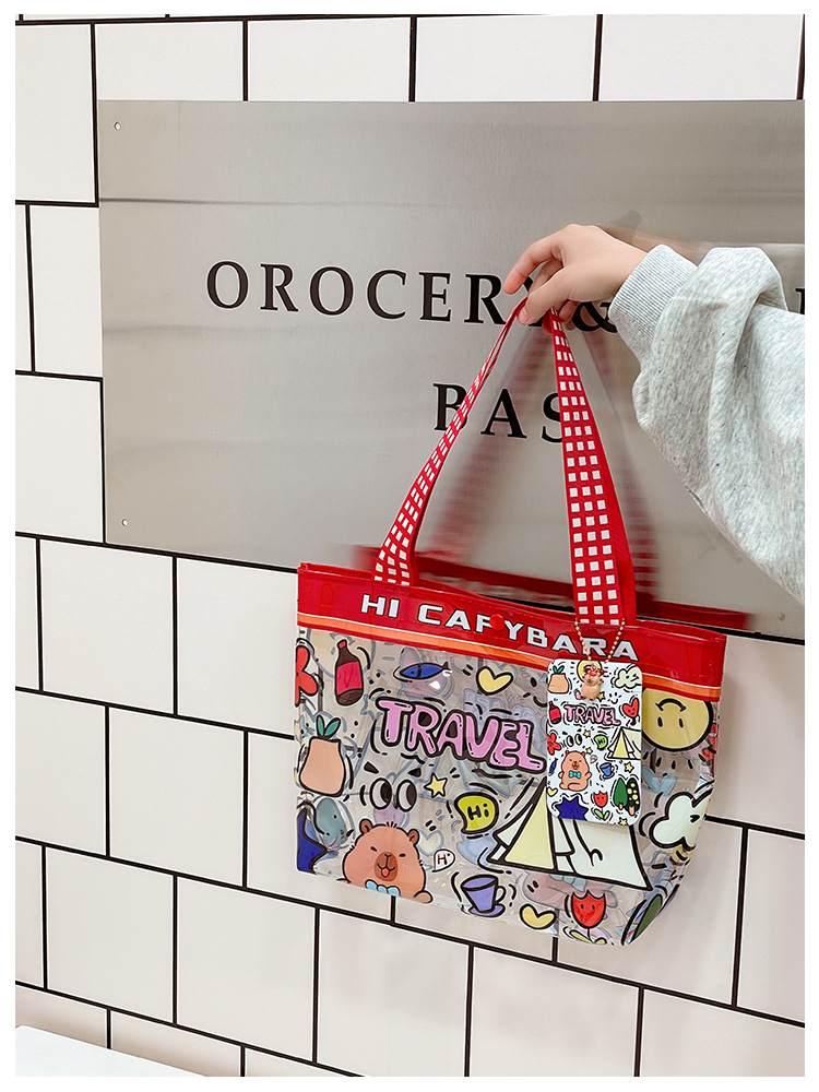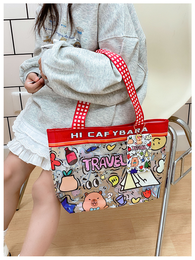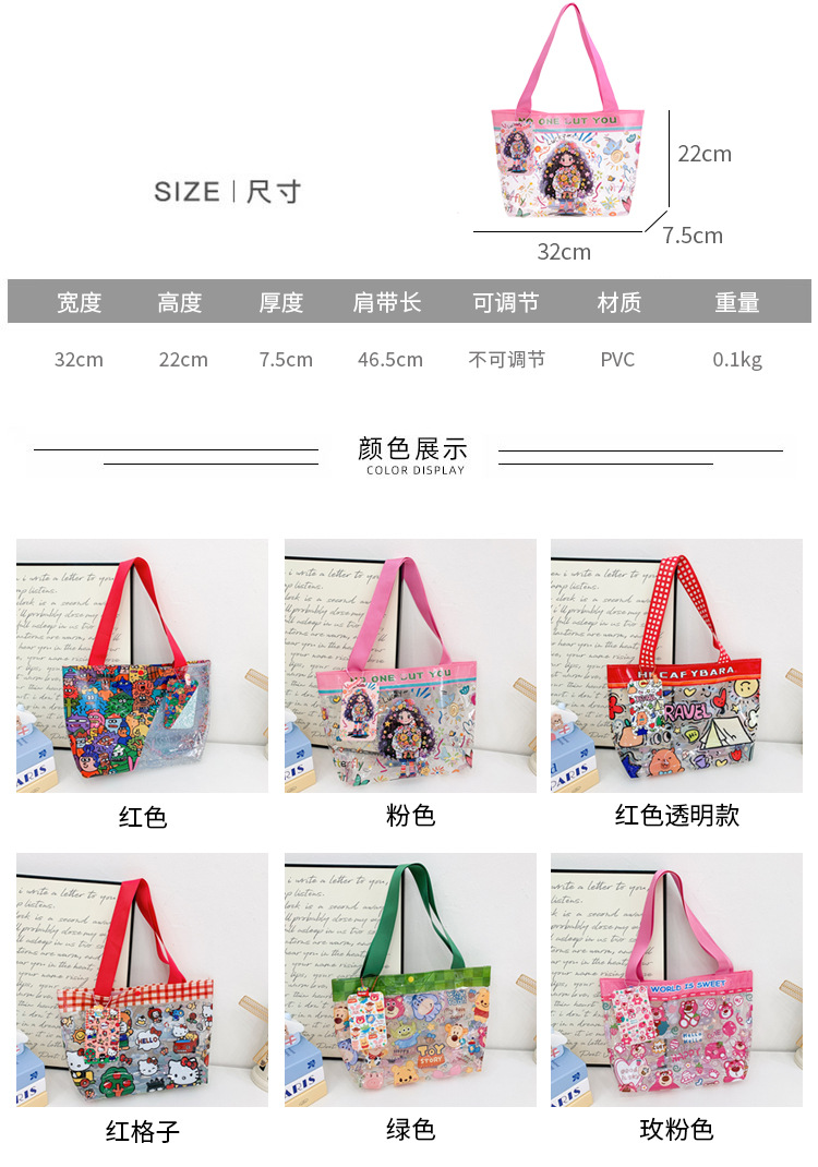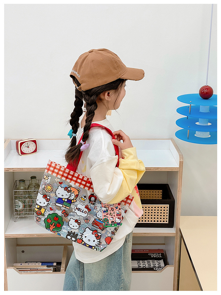 Wholesale transparent cute cartoon children's bag large capacity high value handbag summer shoulder beach jelly bag tide