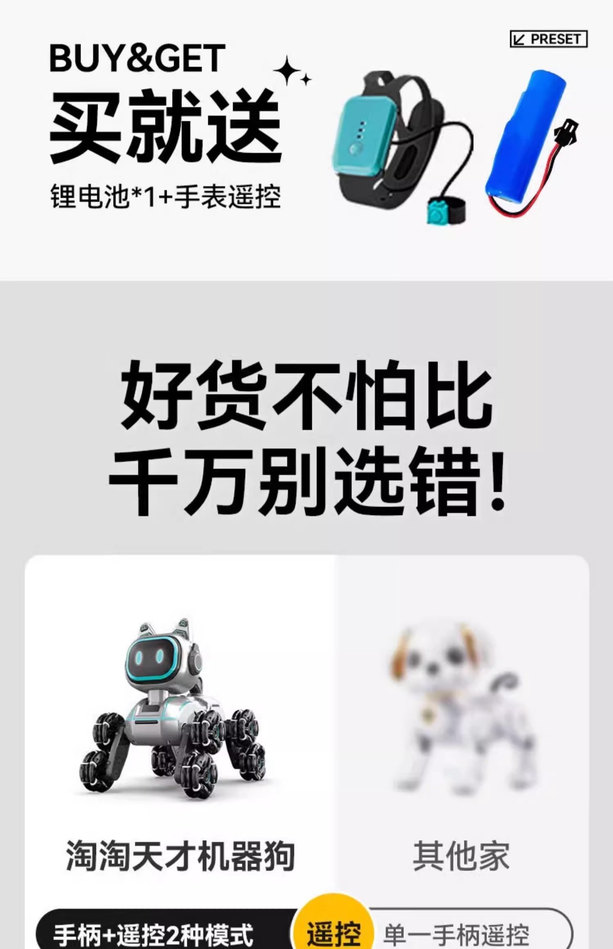 | Color | Single control eight-wheel stunt mechanical dog [handle remote control] exquisite gift box | Color | Upgraded version of dual-control eight-wheel stunt mechanical dog [handle remote control + gesture sensor watch] exquisite gift box |