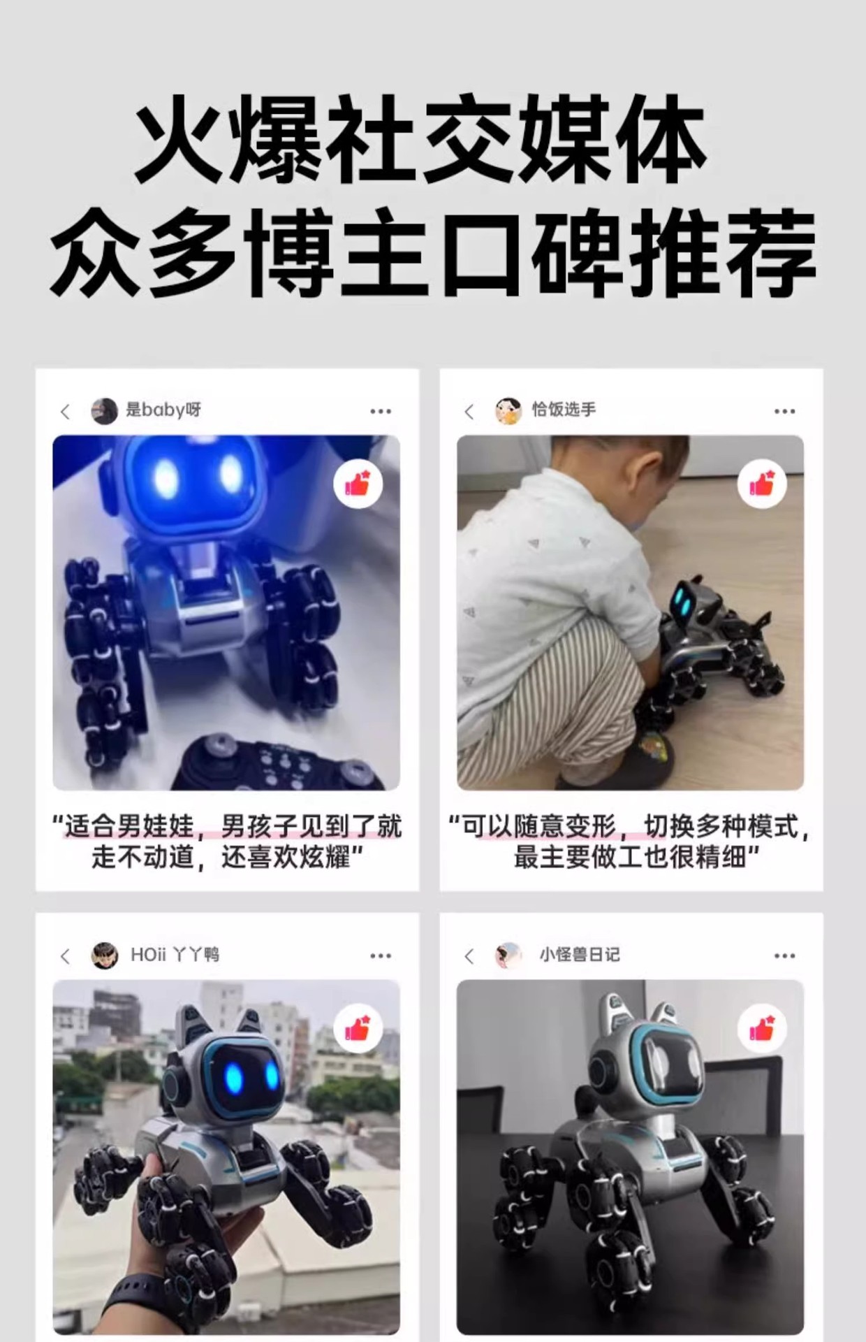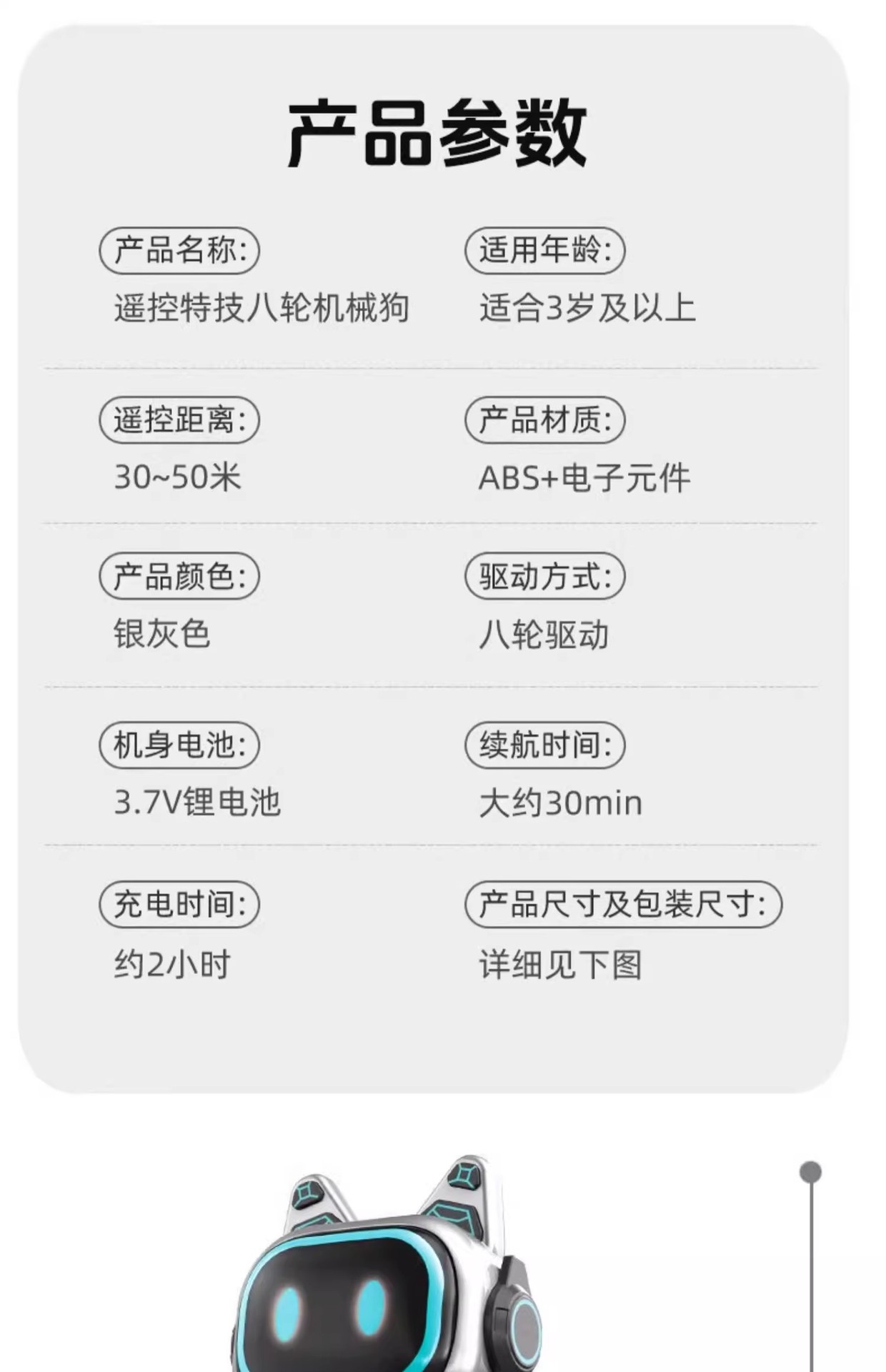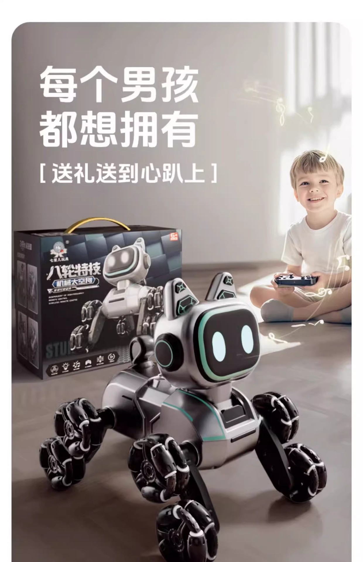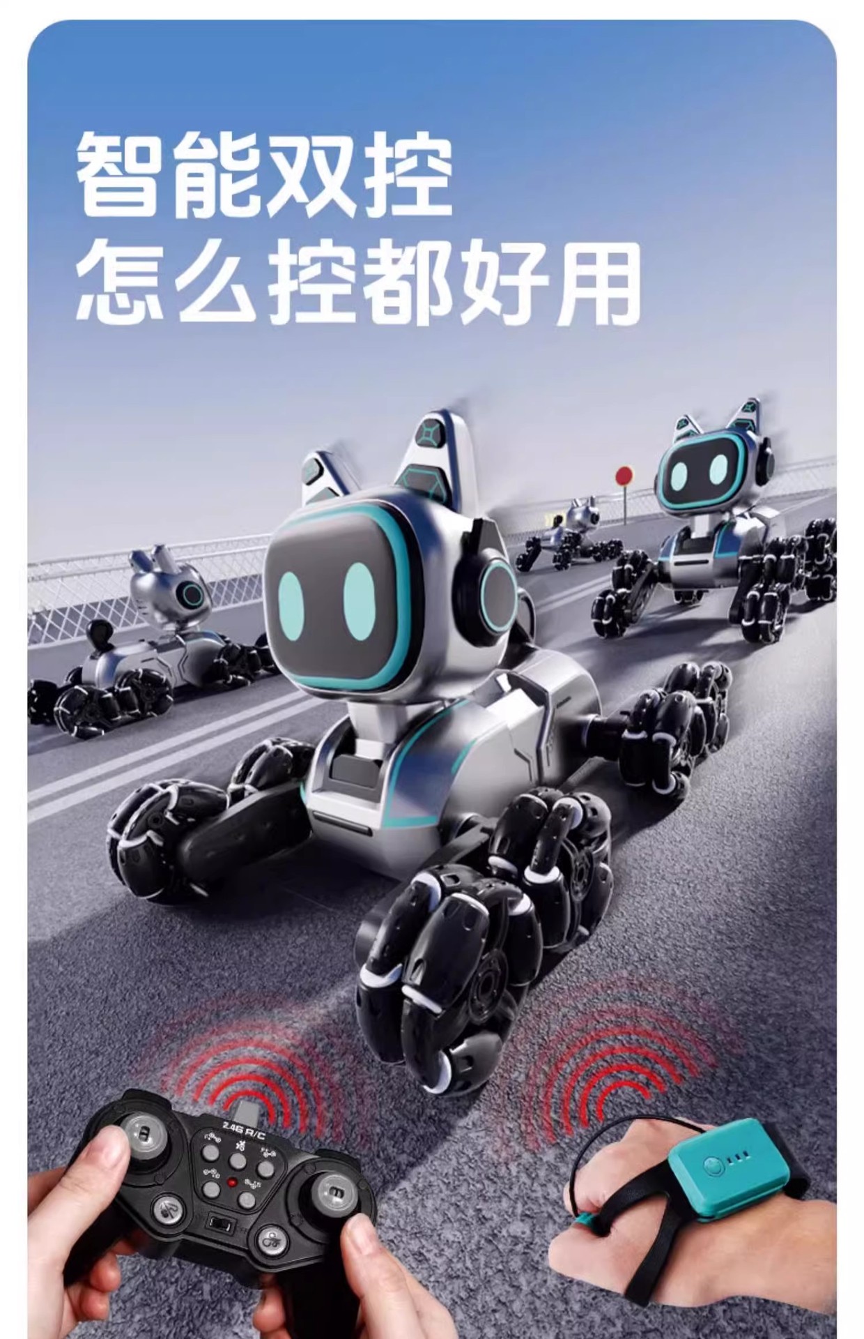 | Shape | Eight-wheel stunt mechanical dog | Game | Gesture sensing remote control car |