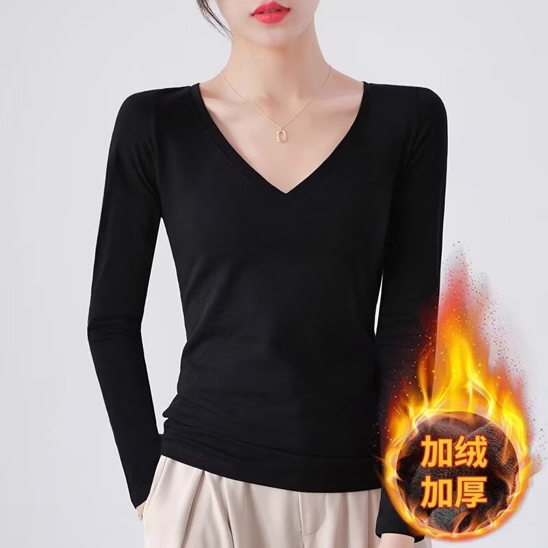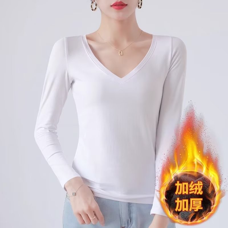 | Color | Black v-neck plus velvet | Color | White v-neck plus velvet |