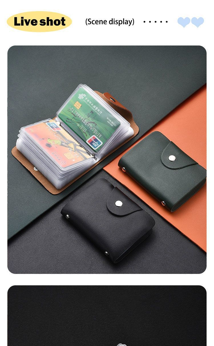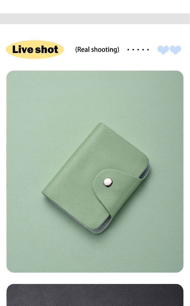 | Color | Upgraded model: military green - 26 card pages + 2 id slots | Color | Upgraded model: fresh green - 26 card pages + 2 id slots |