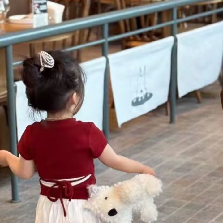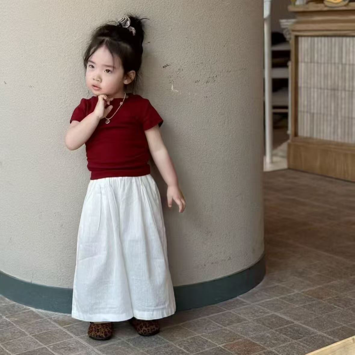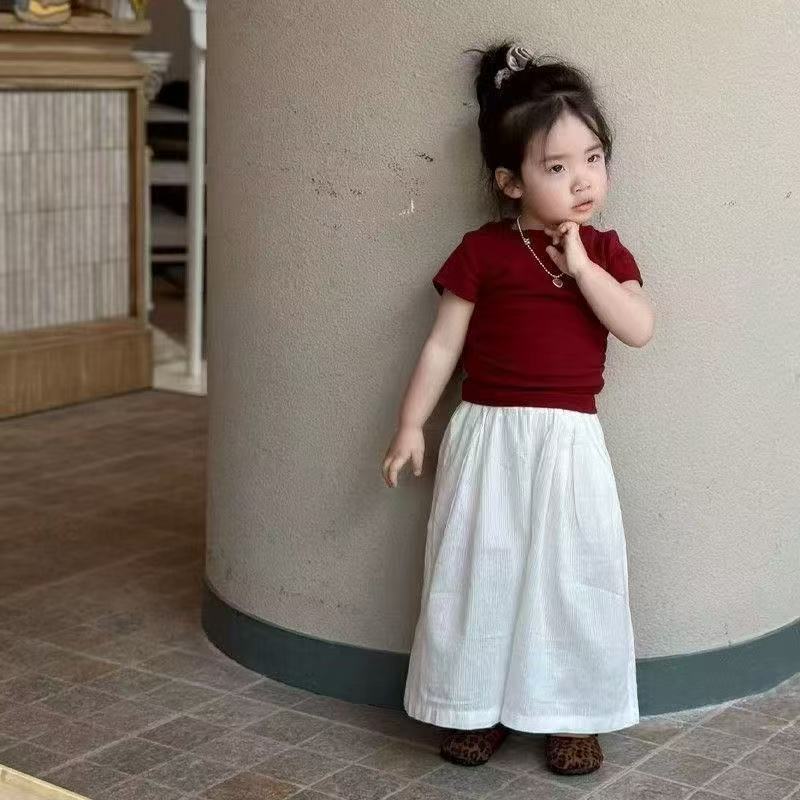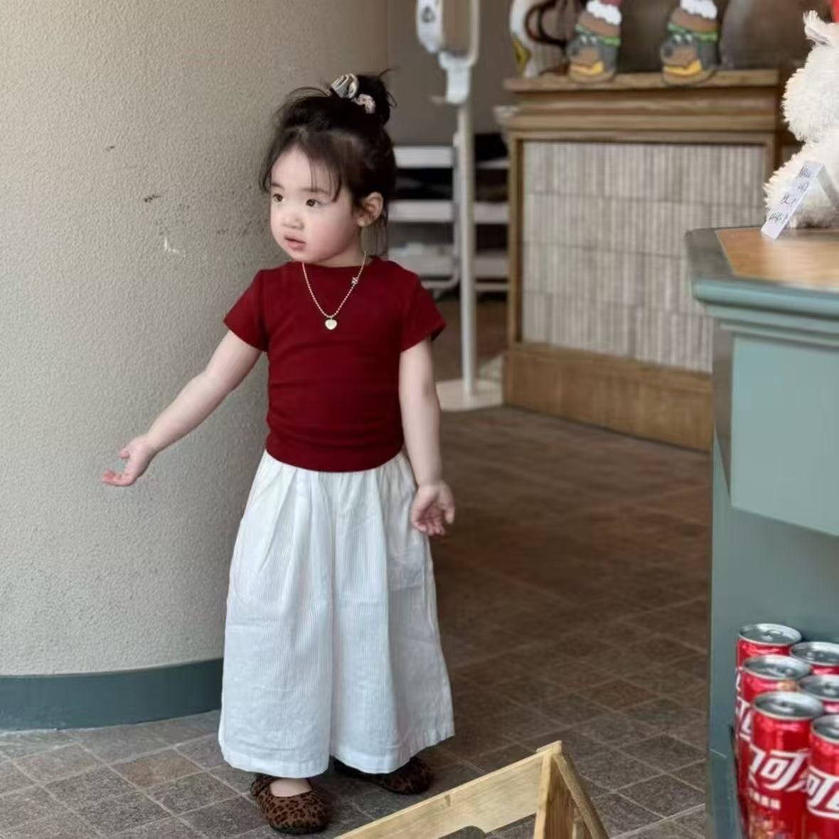 Girls' Summer Korean Style Short-Sleeved Suit 2026 New Style Baby Fashionable Back-Tie T-Shirt White Wide-Leg Pants