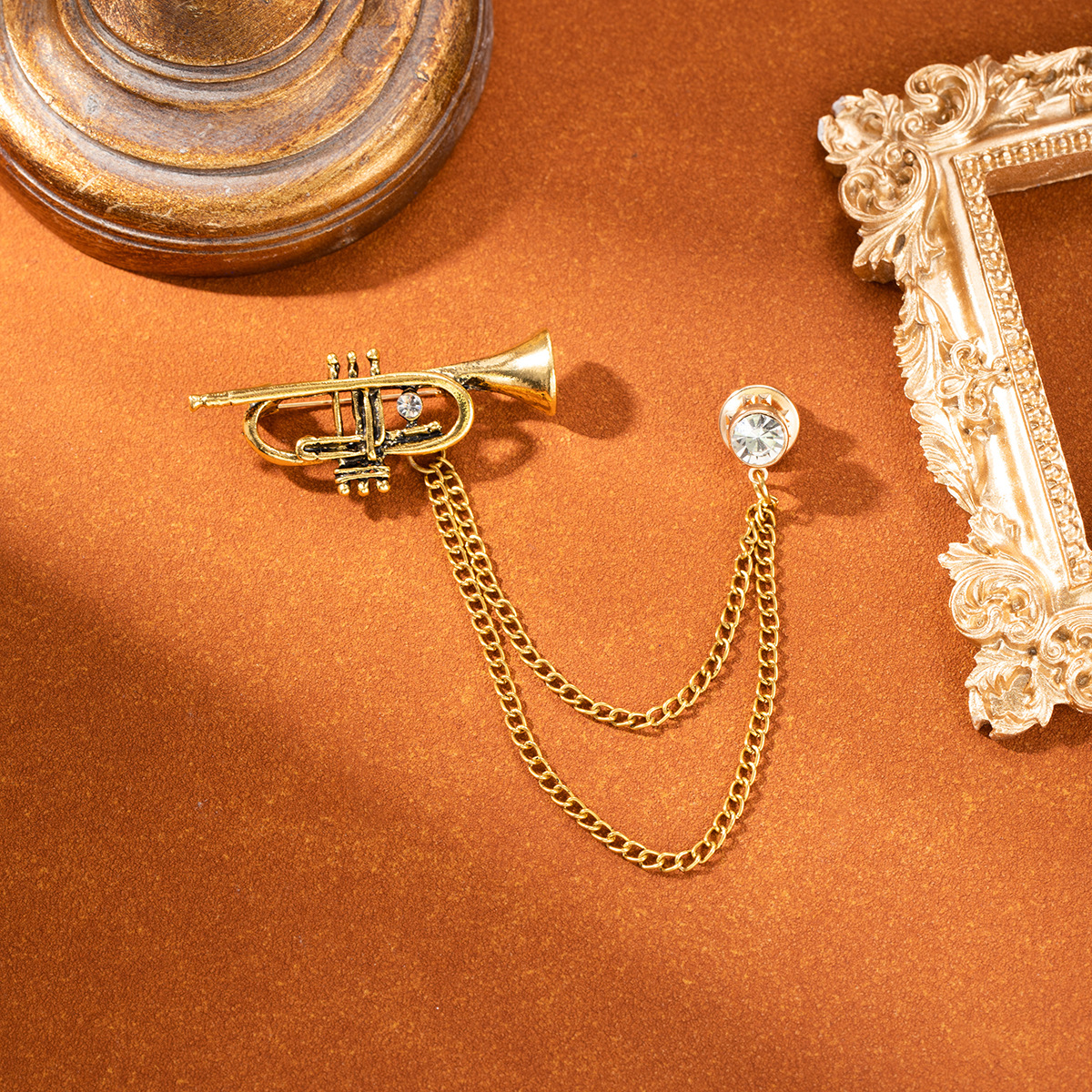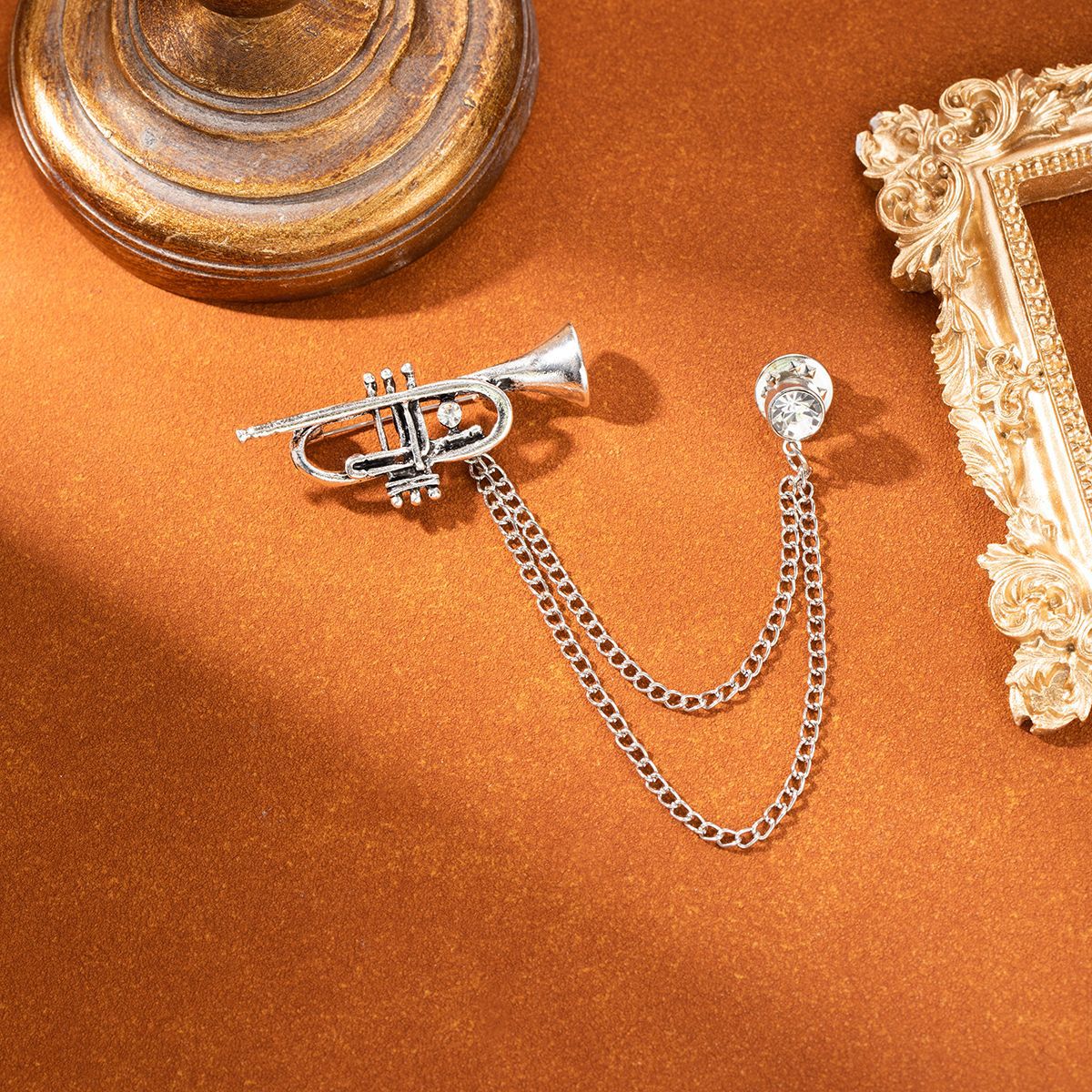 European and American Shape Design Flute Horn Personalized Brooch Retro Fashion Diamond Versatile Musical Instrument Brooch Jewelry
