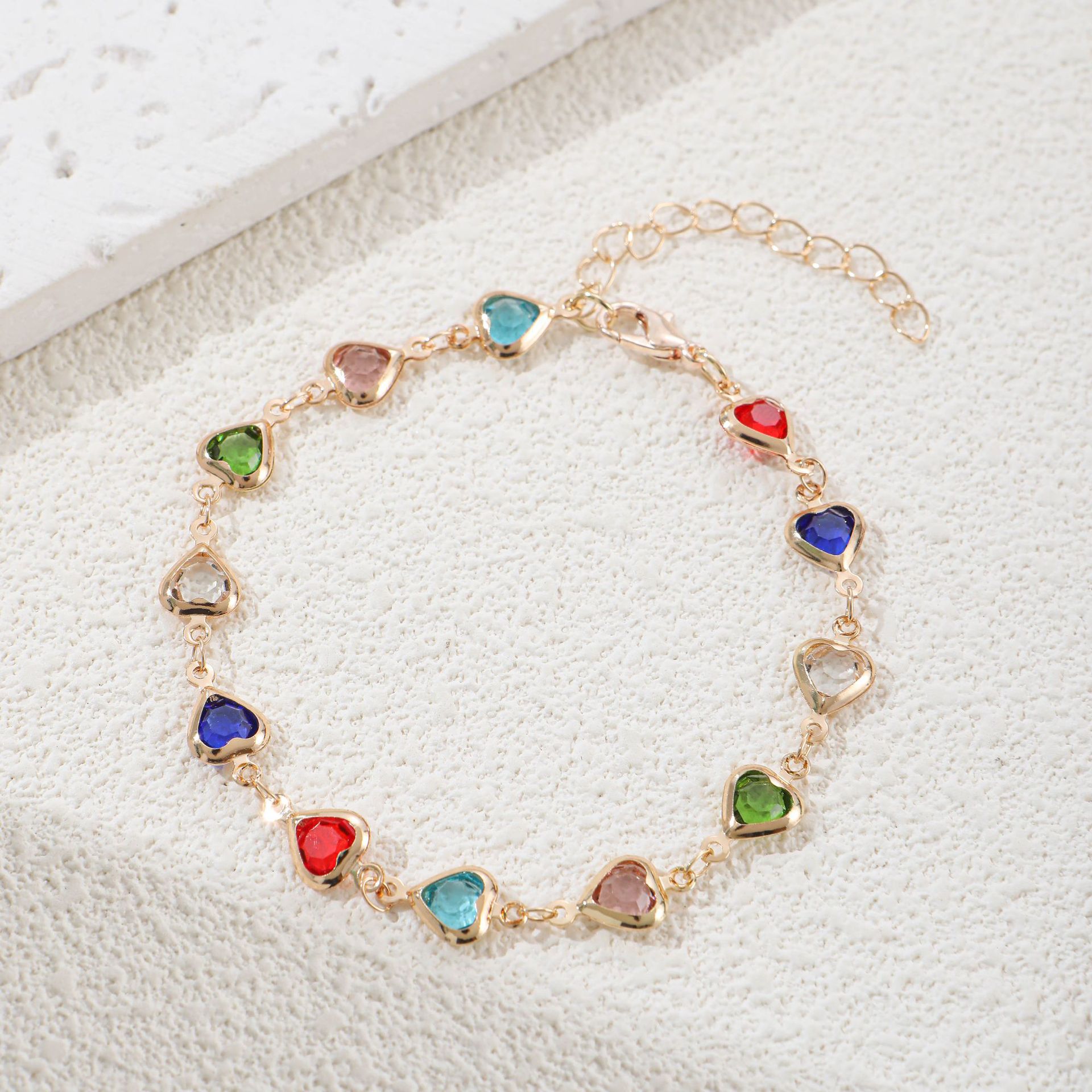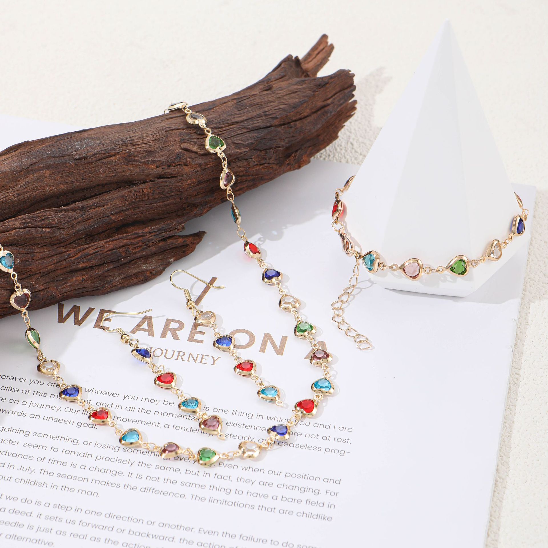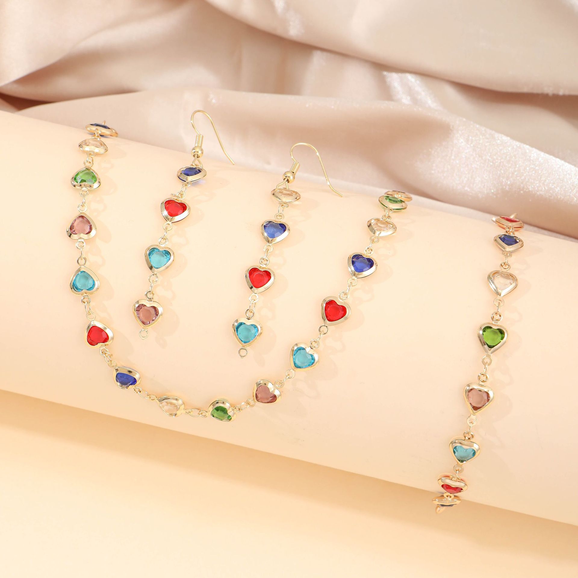 Fashion New European and American Color Love Jewelry suit Women Candy Color Heart Shaped Zircon Sweet Necklace Bracelet Earrings