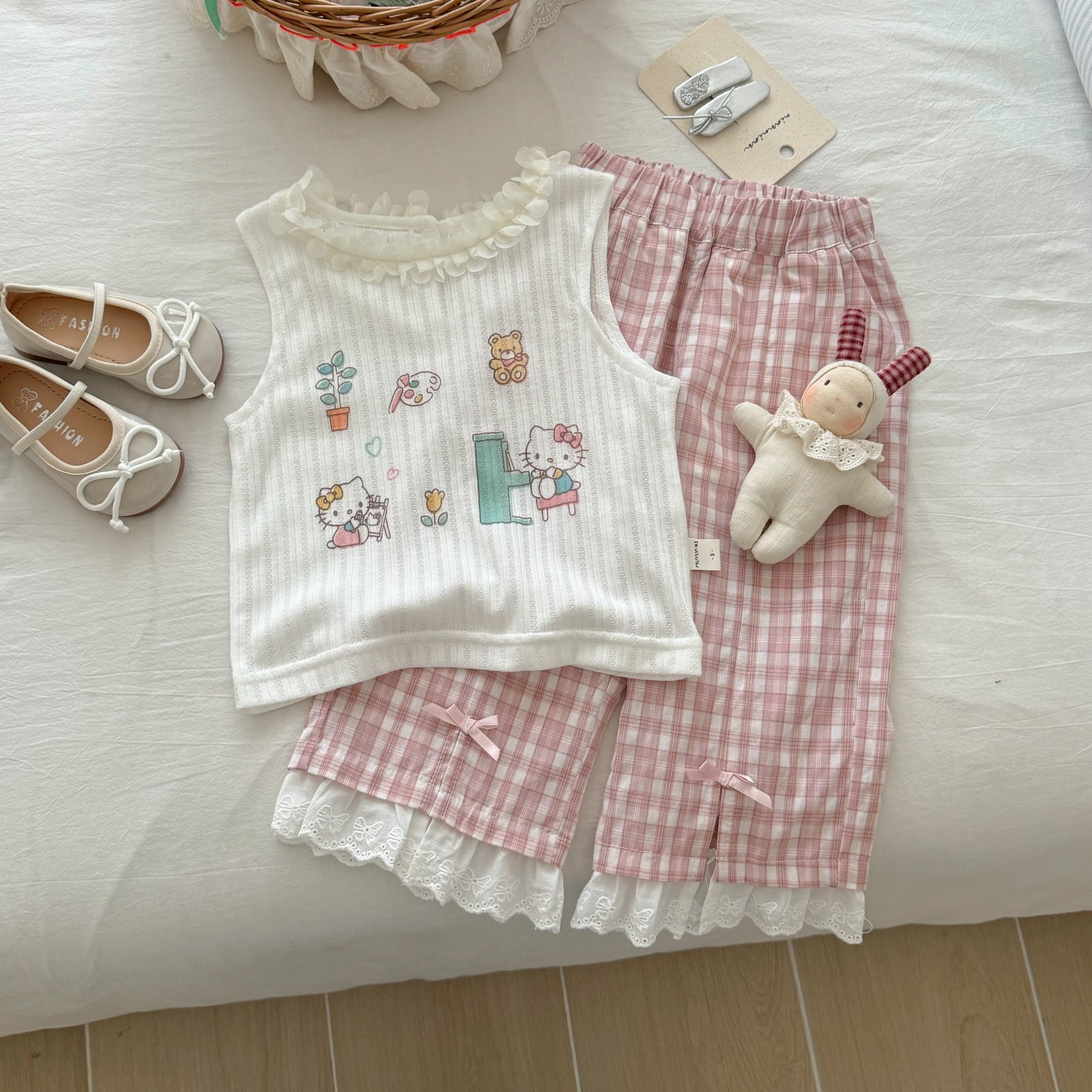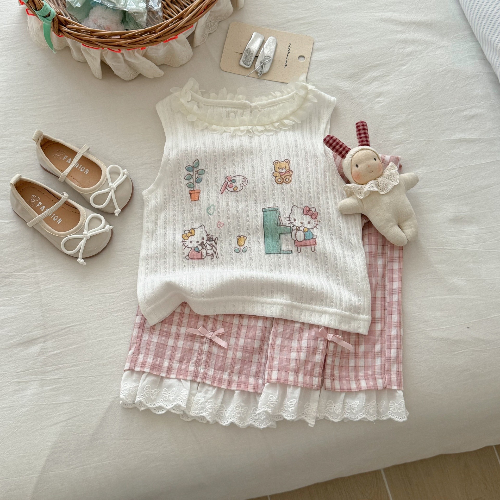 Lime Girl's suit Summer Women's Baoyang Style Cute Sleeveless Vest Pants Baby's Summer Clothes Two-piece Set