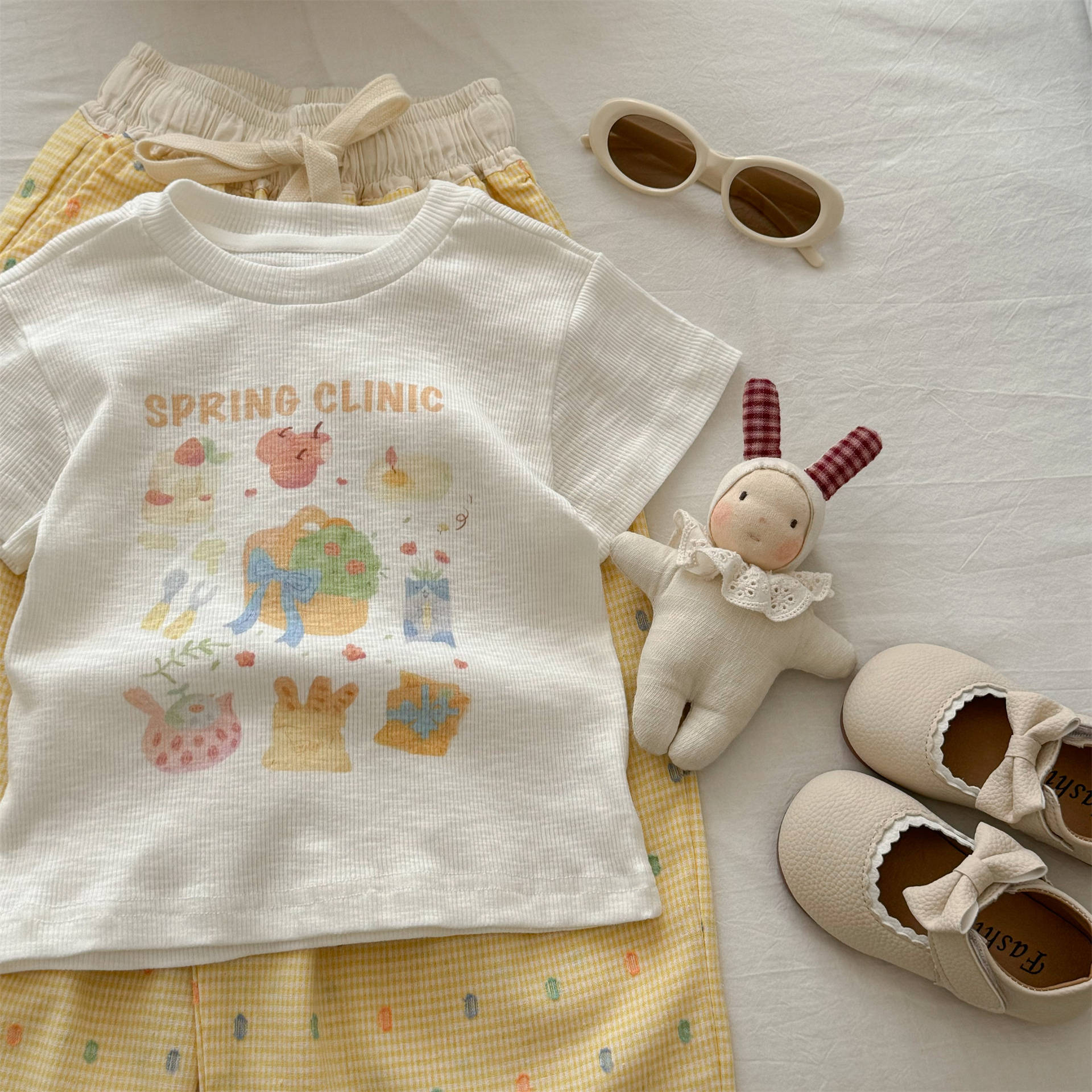 Lime Girl's Summer suit New Korean-style Cartoon Printed Short-sleeved T-shirt Women's Baby's Wide-leg Pants Two-piece Fashionable Set