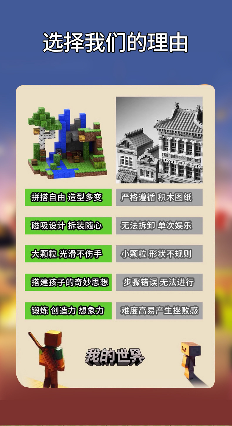 Customized Minecraft Game Peripheral Magnetic Block Building Magnet Building Blocks Wholesale Educational Block Building Block Toys