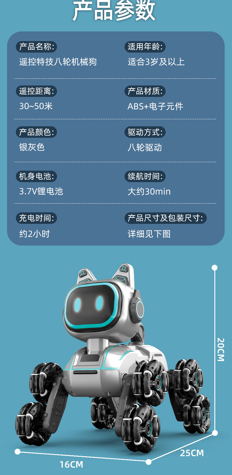 | Applicable people | Boy | Featured functions | Eight-wheel stunt mechanical dog |