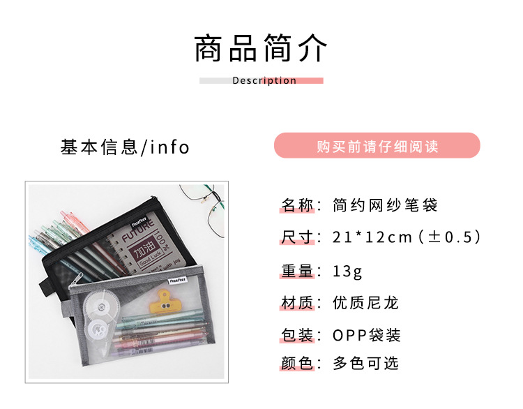 Wow Customized Transparent Mesh Pencil Bag Stationery Bag Student Kidsren Large Capacity Pencil Bag Pencil Box High-End Special