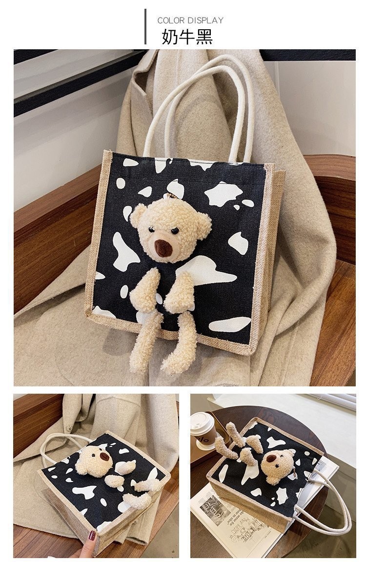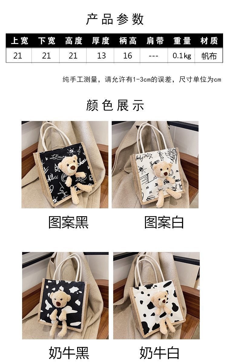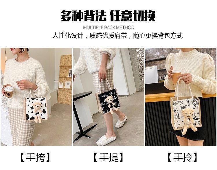 Wow Customized Bear Handbag Canvas Bag Cute Japanese Style Small Bag Graffiti Lunch Bag Student Handbag