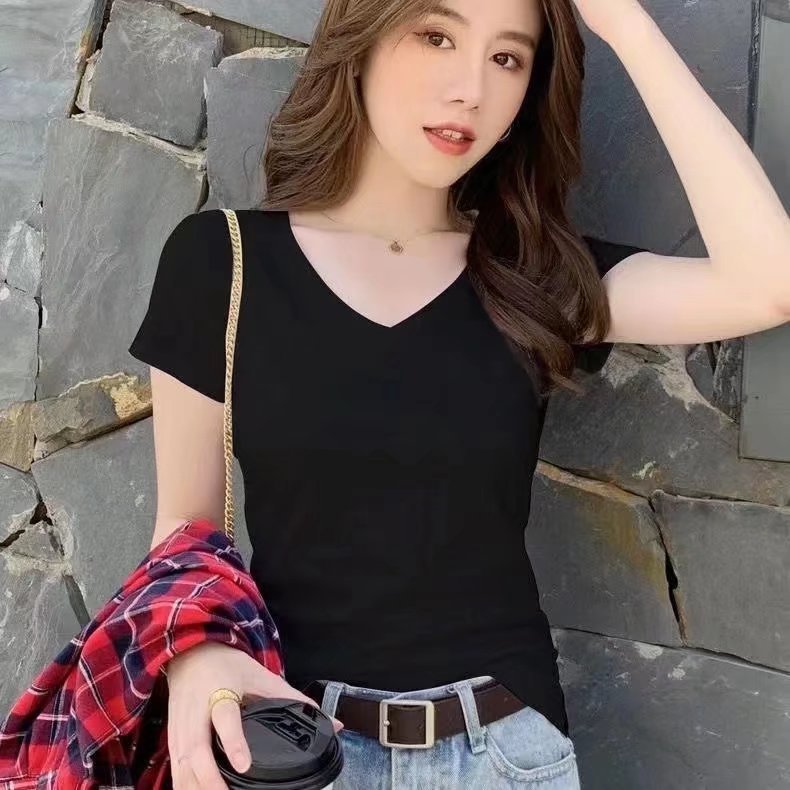 | Color | Round neck black thin long sleeves | Color | V-neck white thin short sleeves |