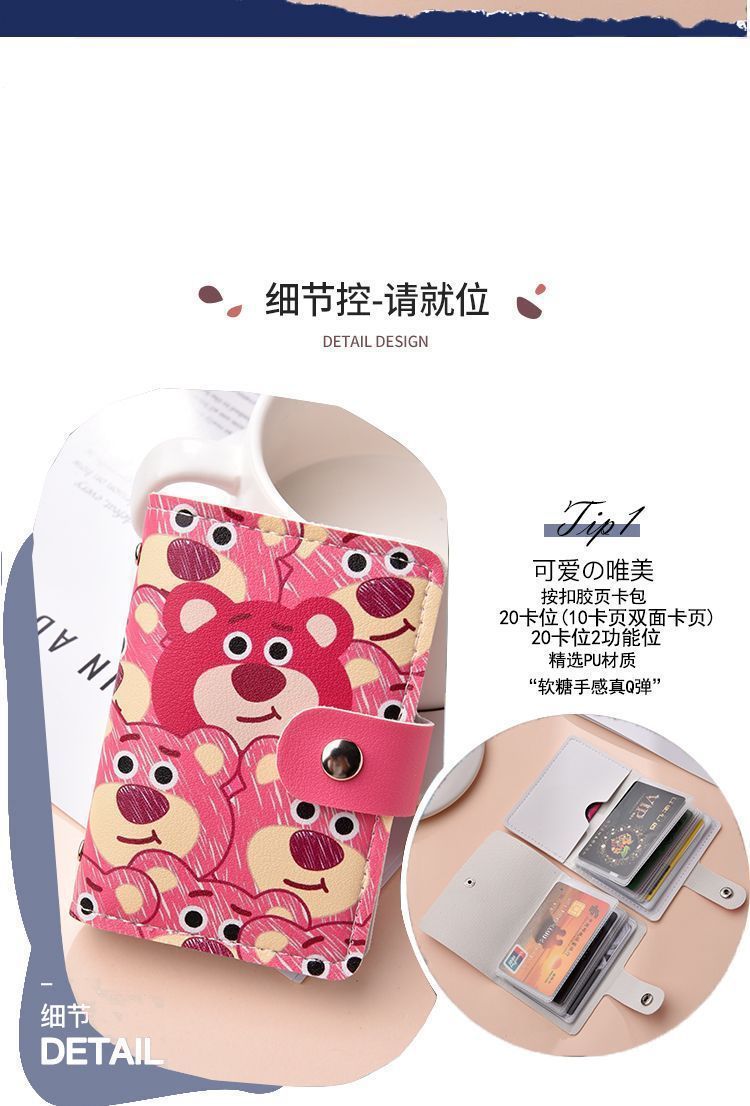 Strawberry Bear Cartoon Cute Card Holder Women's Personalized Large Capacity Multi-Card Slot Id Card Holder Men's Internet Celebrity Card Holder