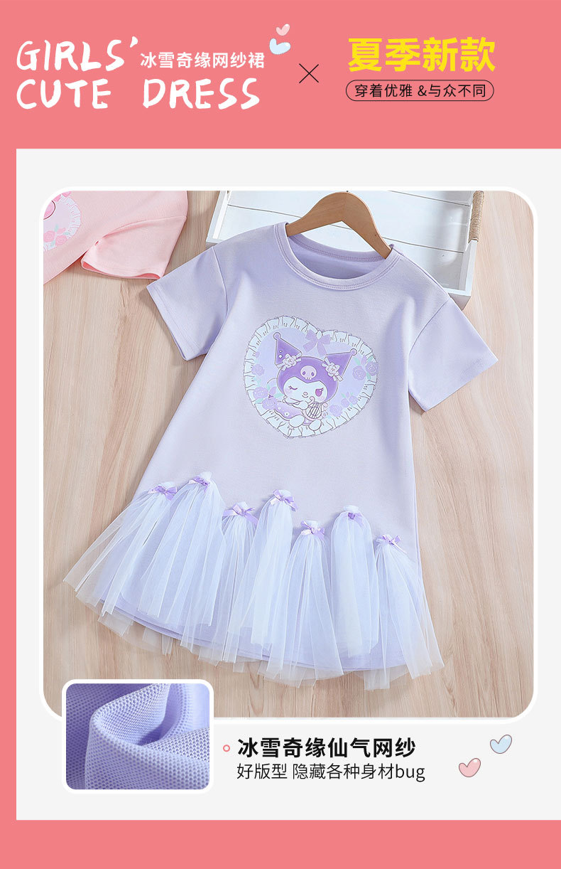 Girls' Summer Short-Sleeved Dress 2026 New Style Kidsren's Princess Dress Fashionable Baby Girl T-Shirt Gauze Dress Trendy