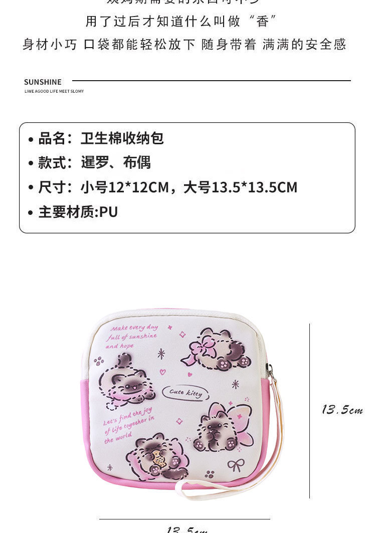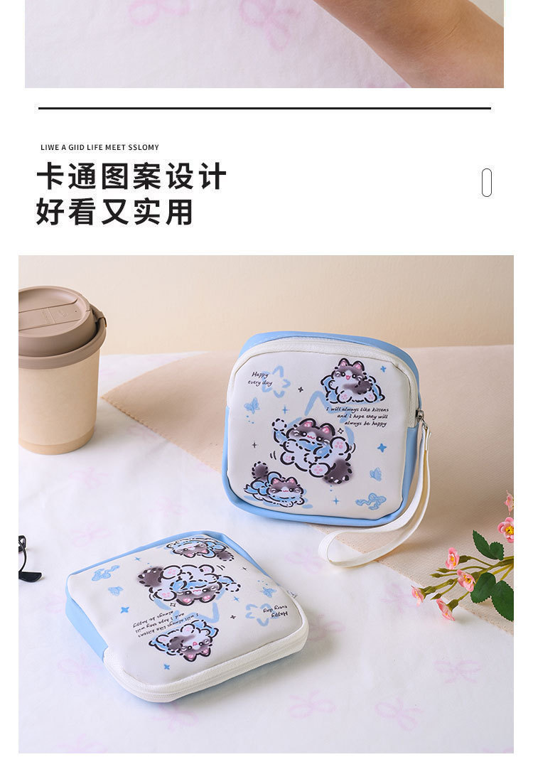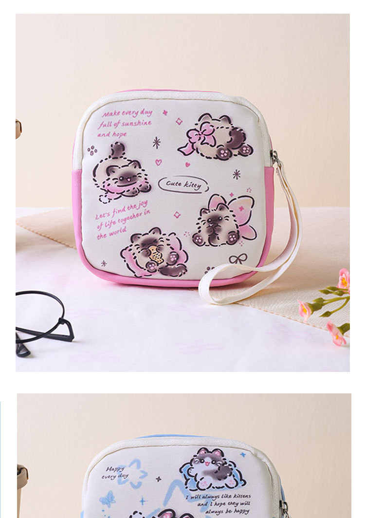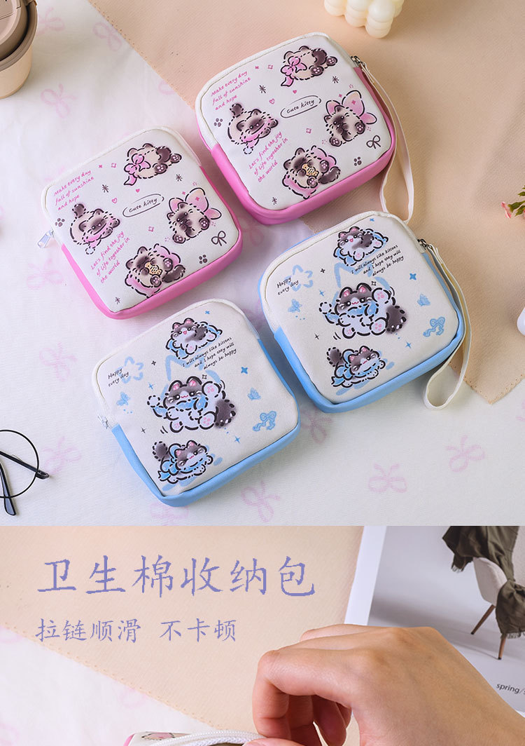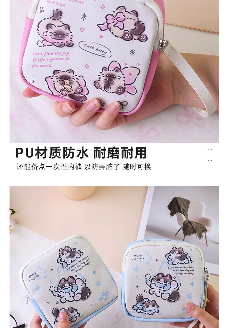 Kitten Sanitary Napkin Storage Bag Cartoon Cute Small Large Capacity Bag Waterproof Sanitary Napkin Storage Bag for Female Students