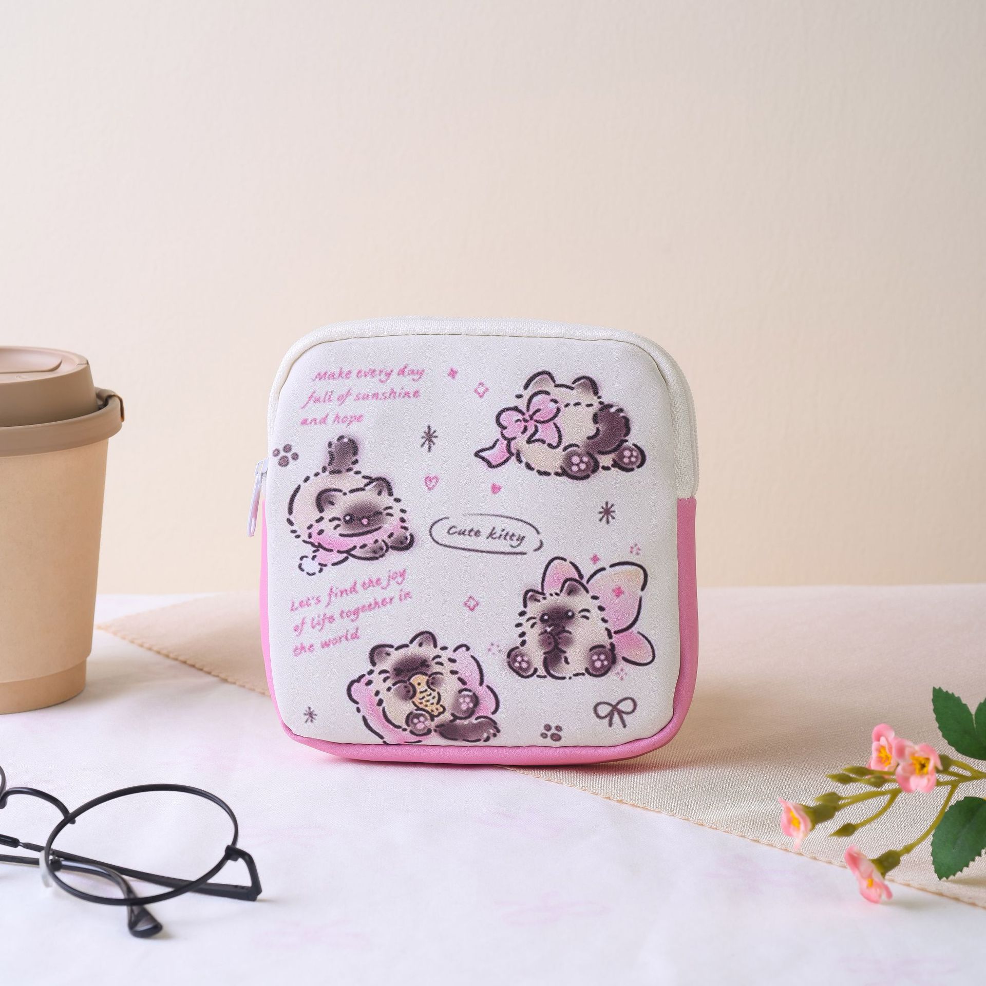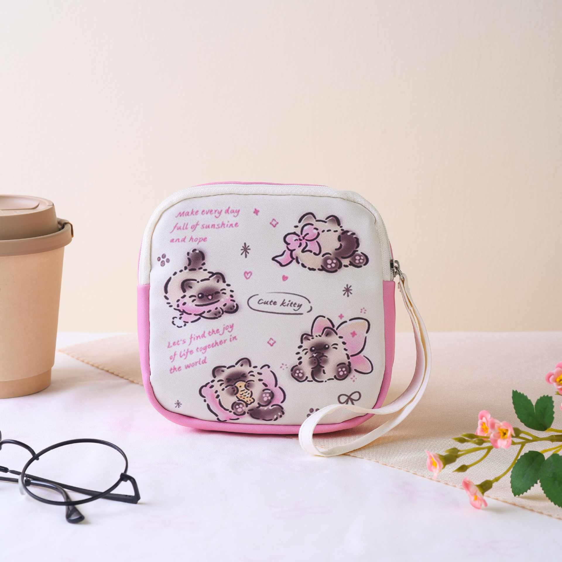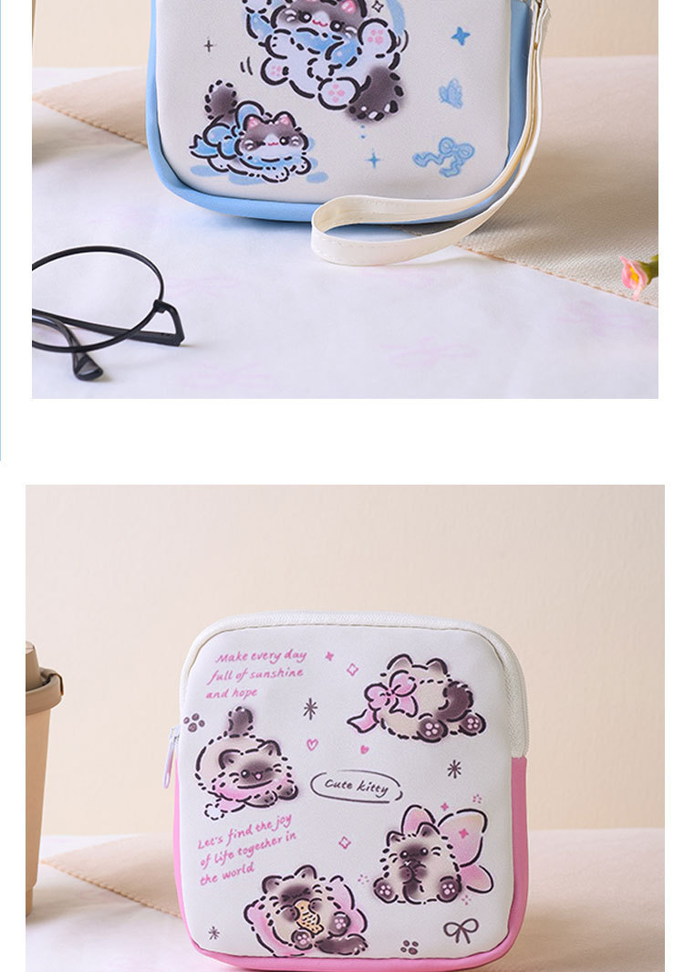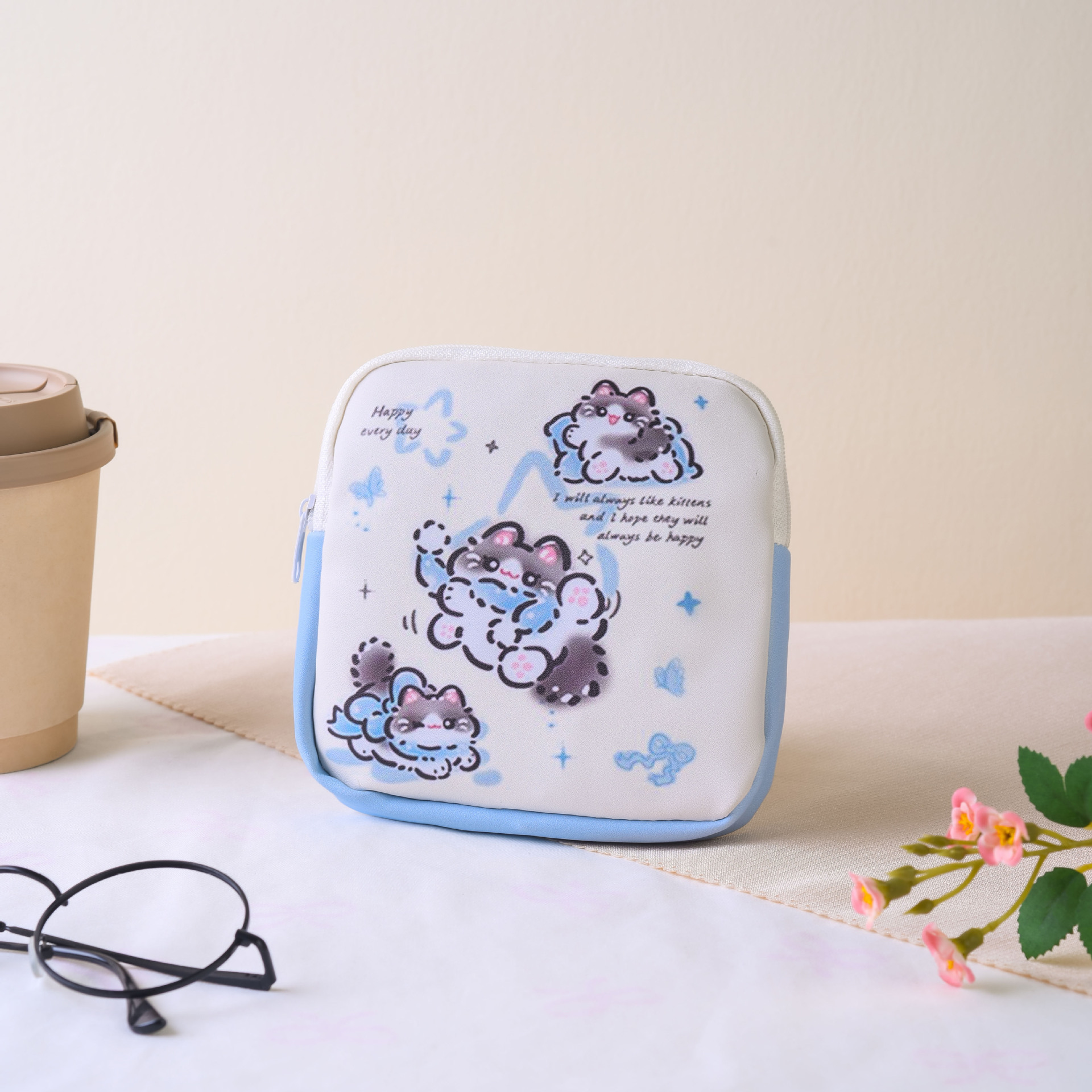 Kitten Sanitary Napkin Storage Bag Cartoon Cute Small Large Capacity Bag Waterproof Sanitary Napkin Storage Bag for Female Students