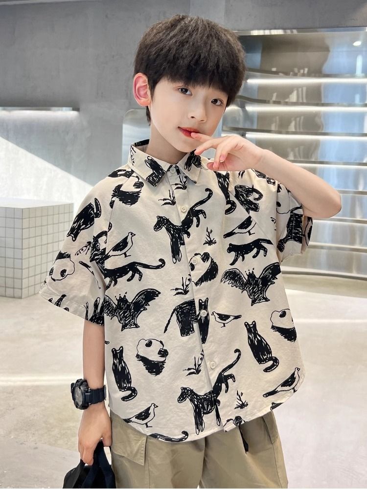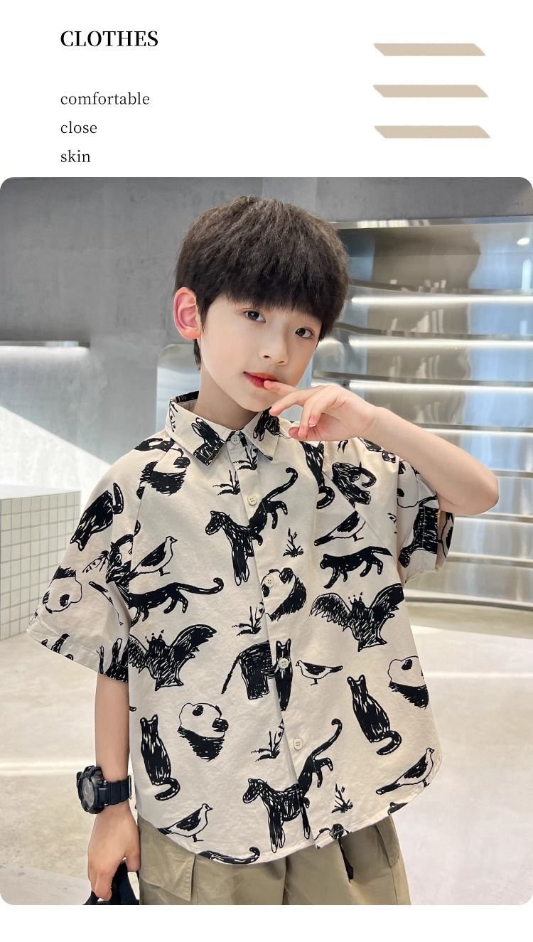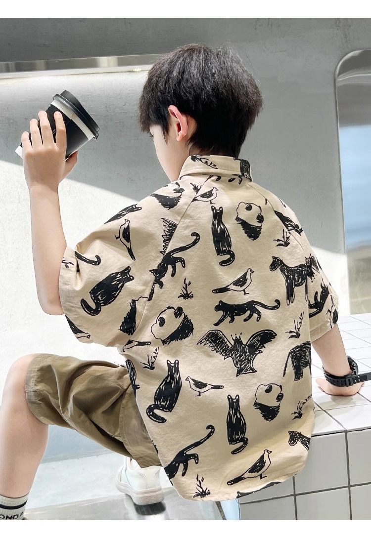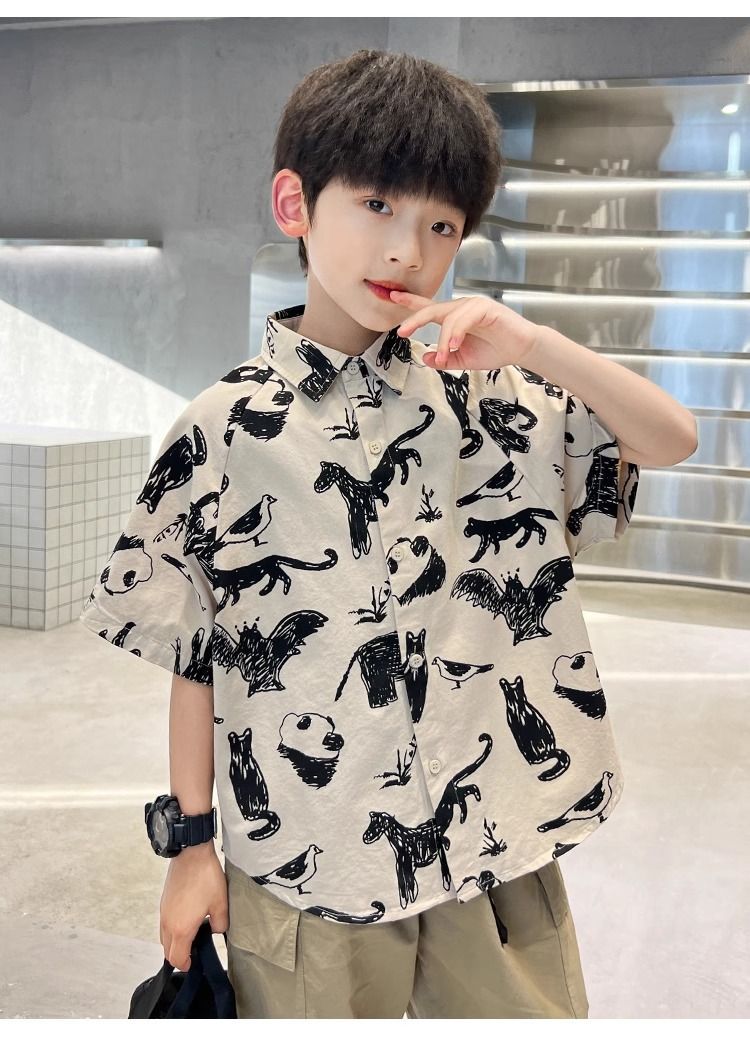 2026 New Trendy Brand Children's Clothing Boys' Summer Short-Sleeve Shirt for Older Kids, Summer Style Loose Street-Style Shirt
