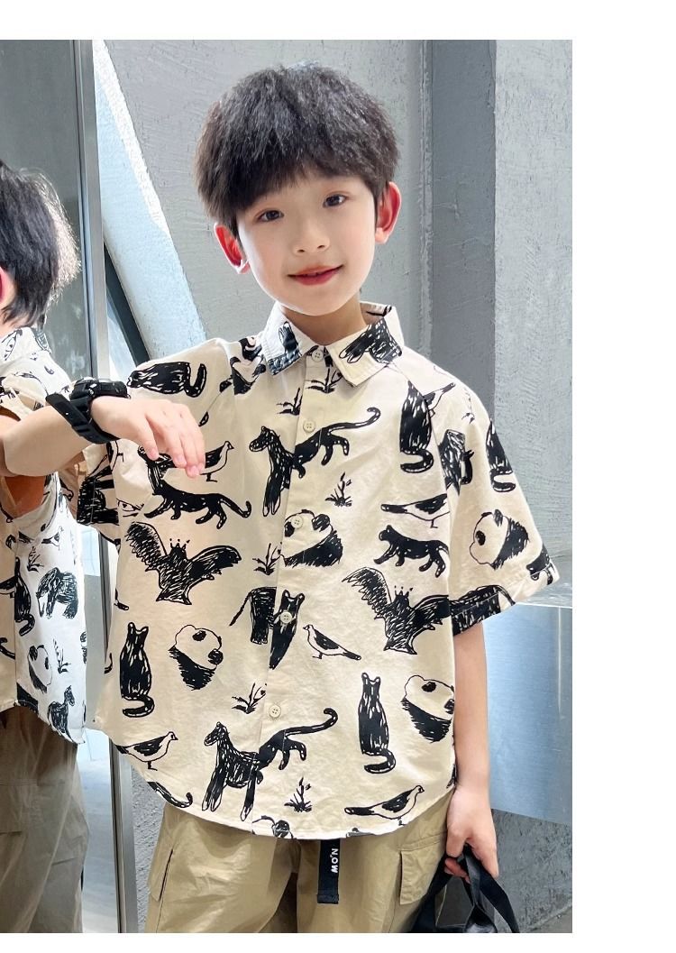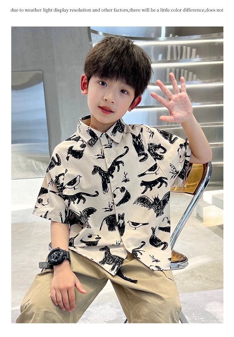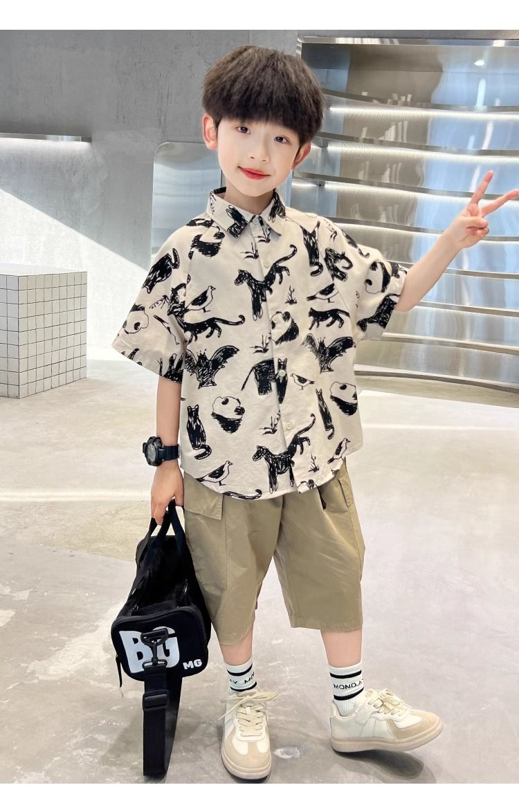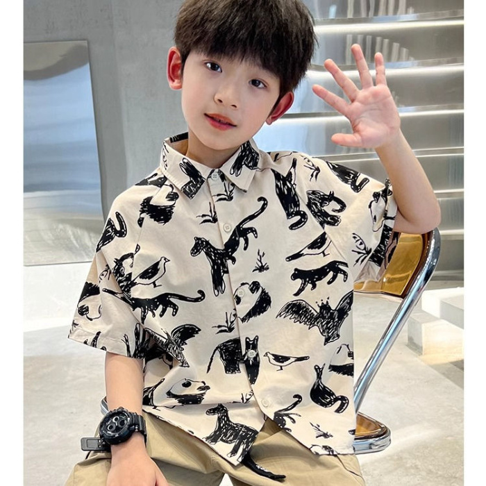 2026 New Trendy Brand Children's Clothing Boys' Summer Short-Sleeve Shirt for Older Kids, Summer Style Loose Street-Style Shirt